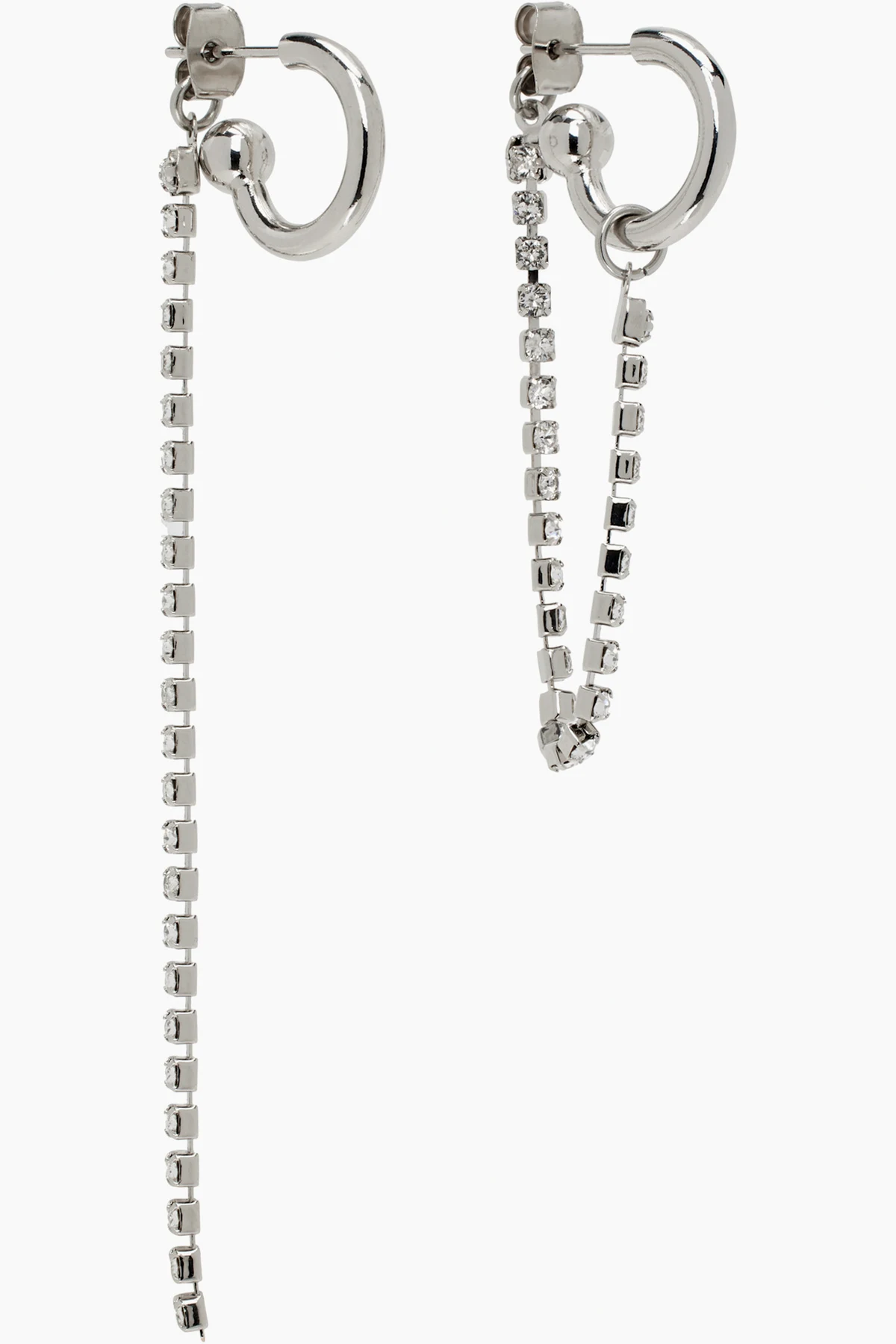 Pair of mismatched open-hoop earrings in palladium-plated brass.