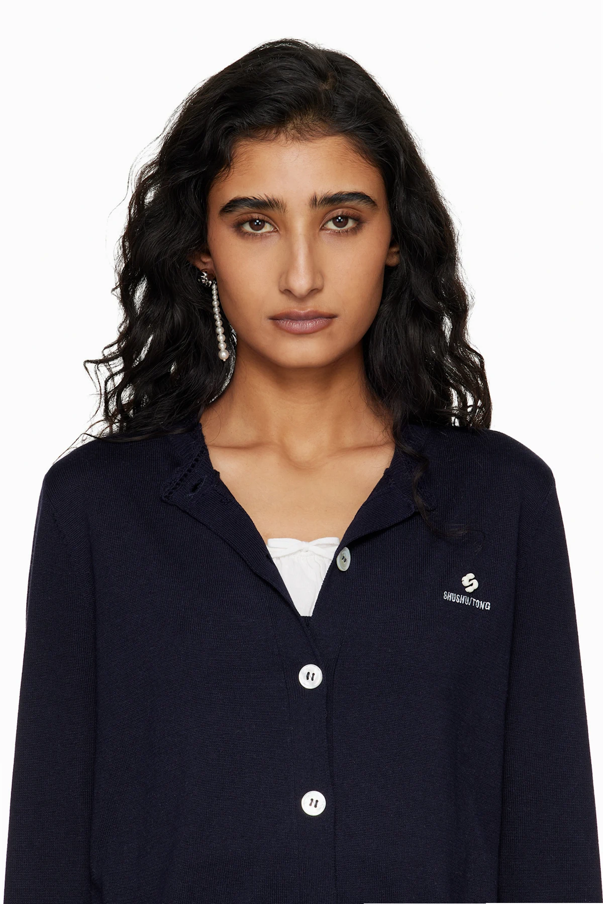 · Beaded faux-pearls at drop