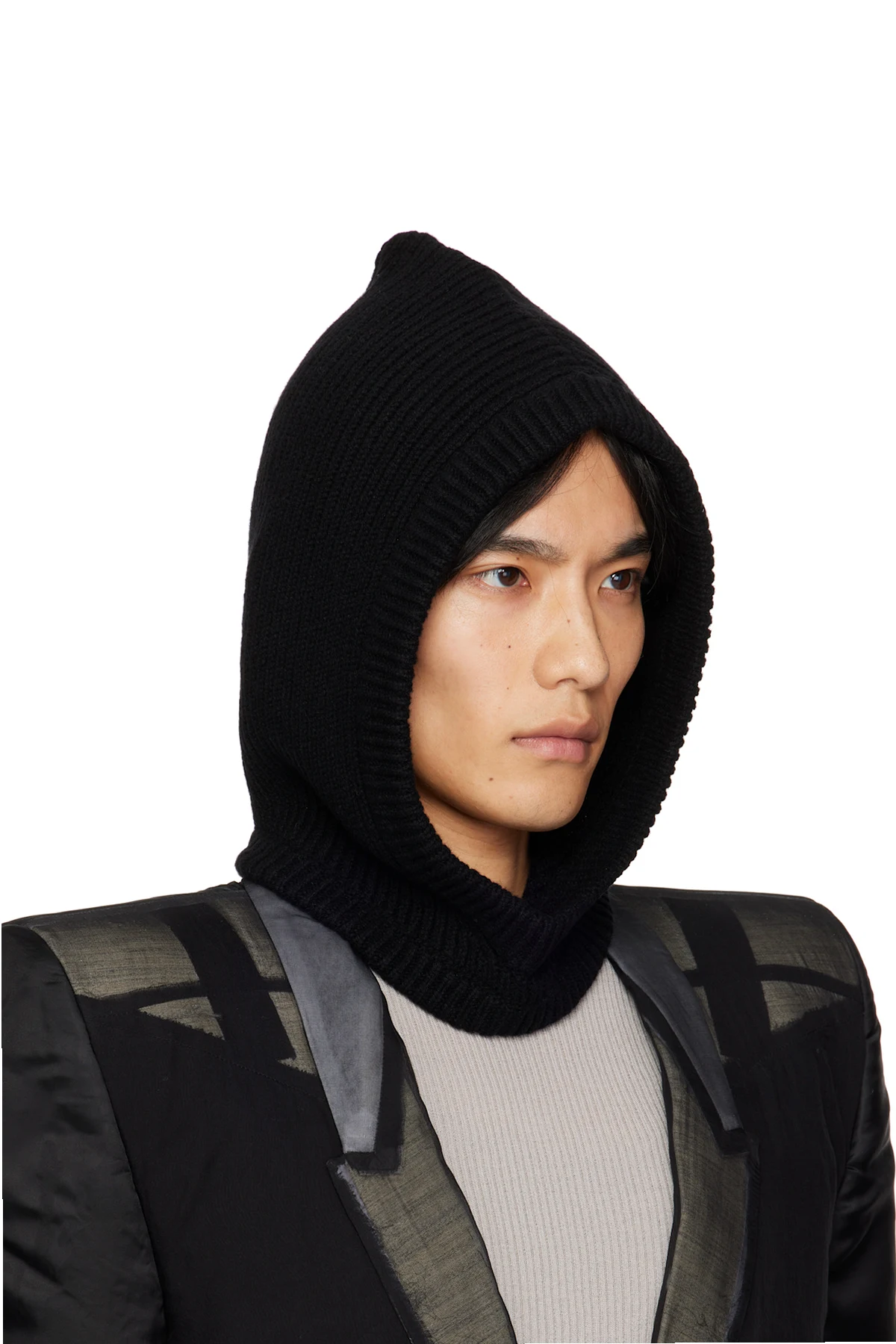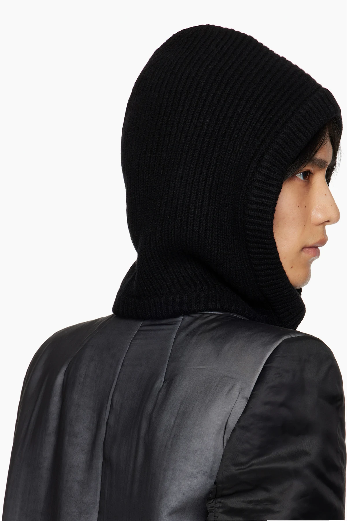 Rib-knit boiled recycled cashmere- and wool-blend hood.