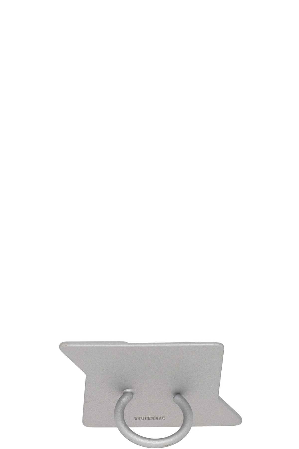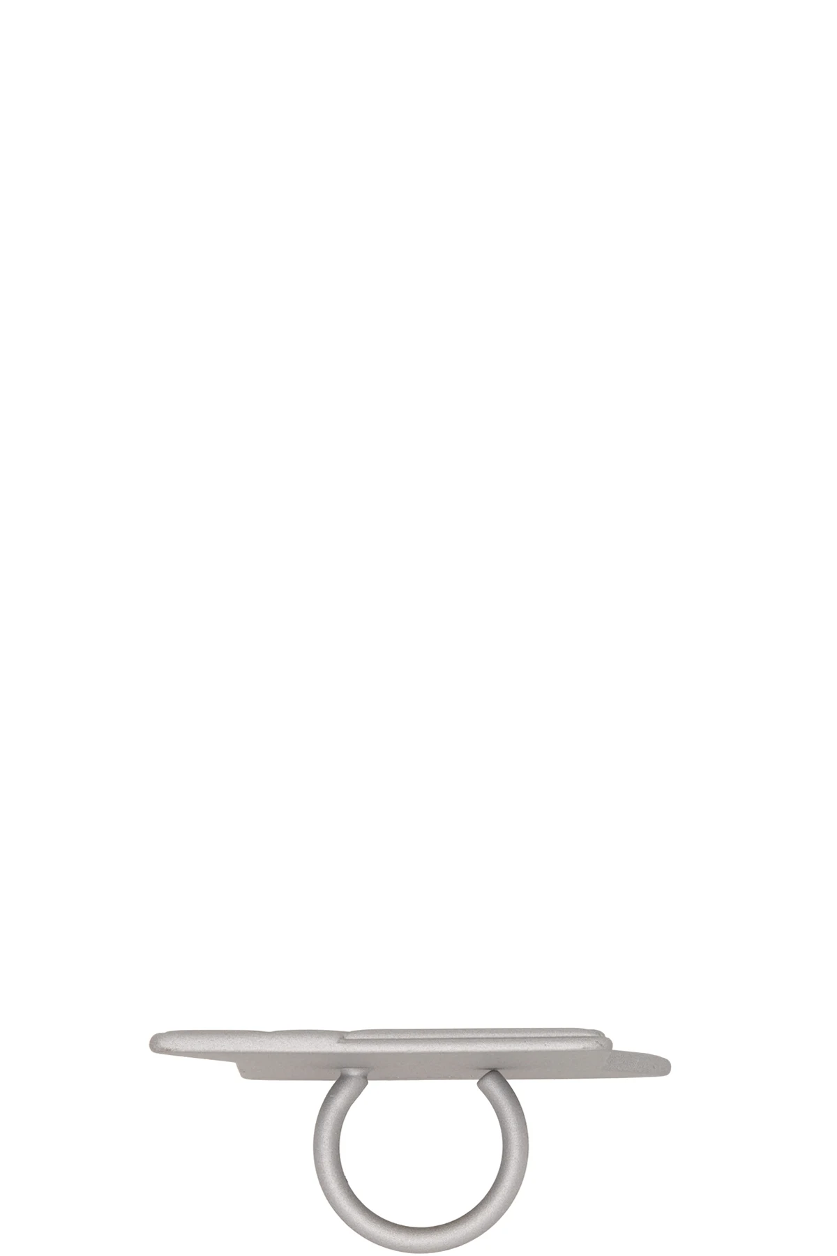 Signet ring in silver-tone brass. Logo-engraved graphic hardware at face. Approx. 1.75" diameter.