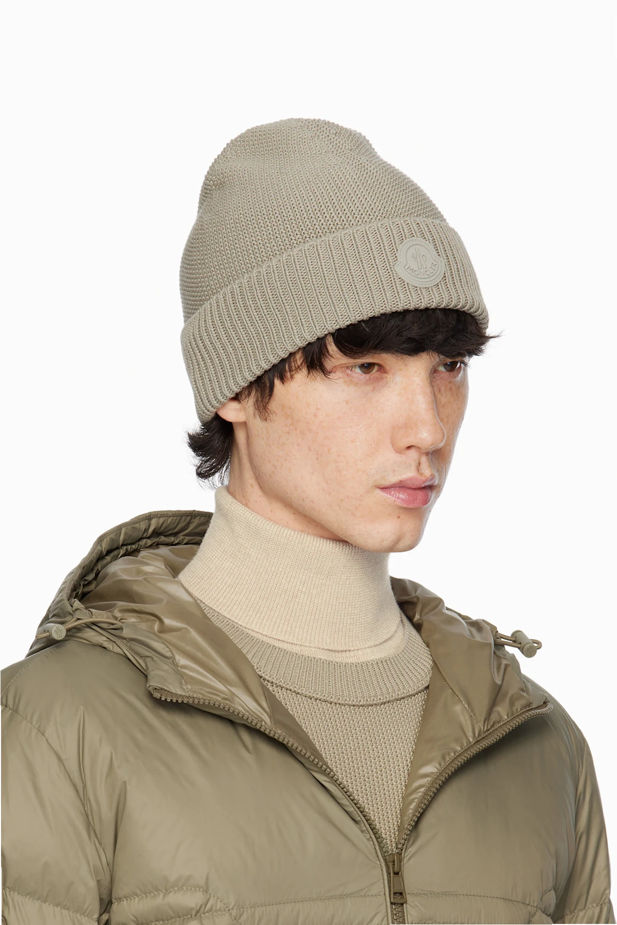Beige Logo Patch Beanie