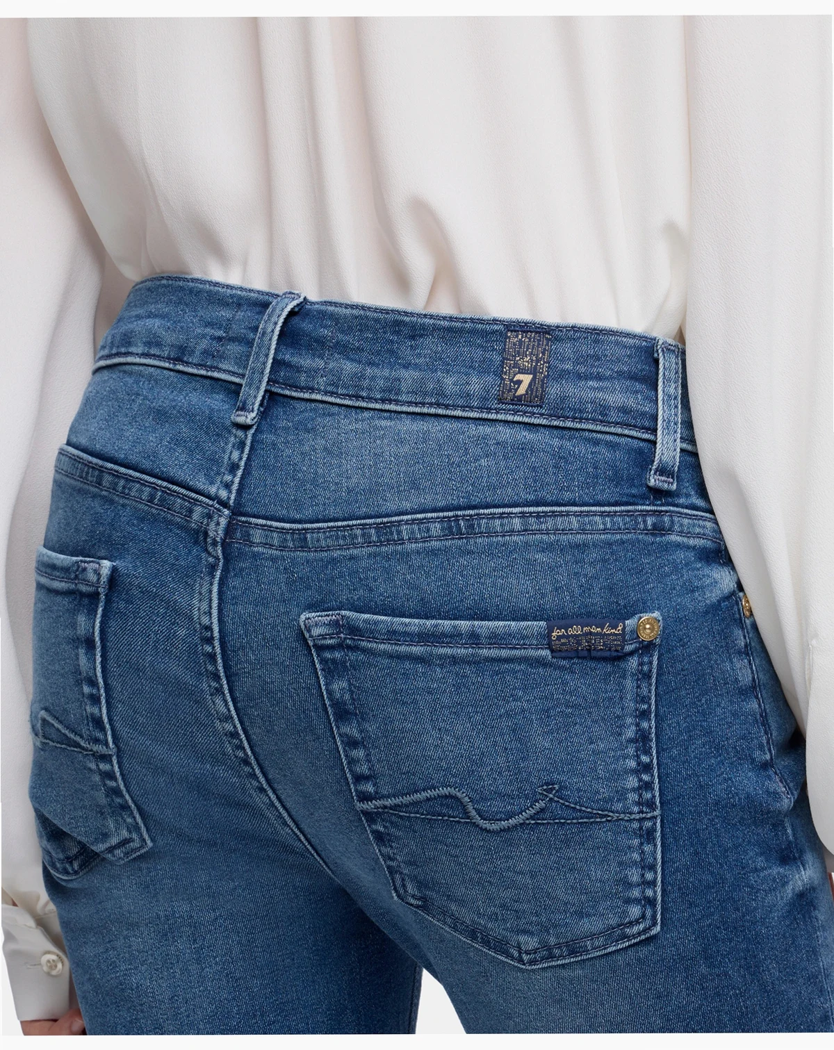 Effortlessly versatile, these 7 For All Mankind jeans offer the timeless appeal of a classic bootcut with a shorter inseam for a ready-to-wear fit. Featuring a zipper fly with button closure and a traditional five-pocket design, they combine style and practicality for everyday wear.