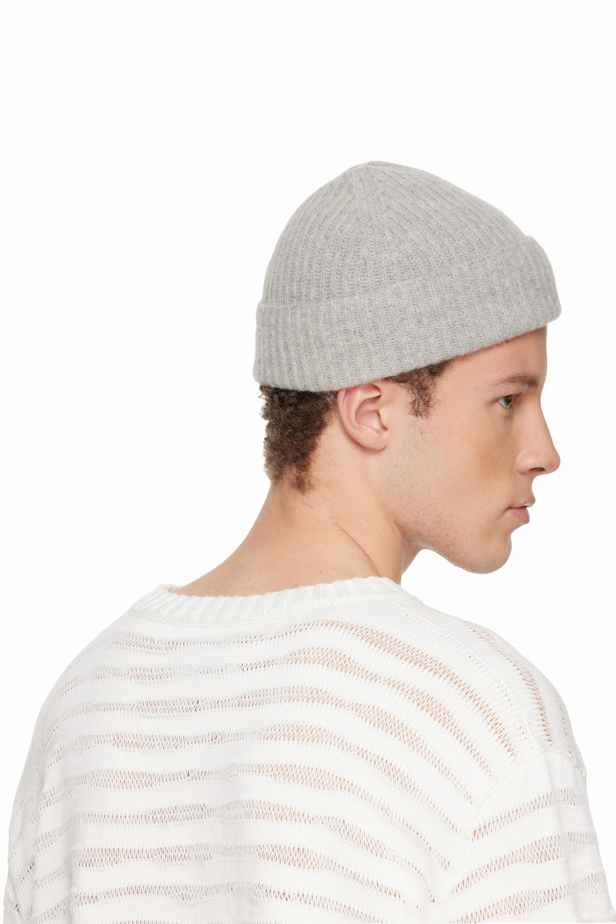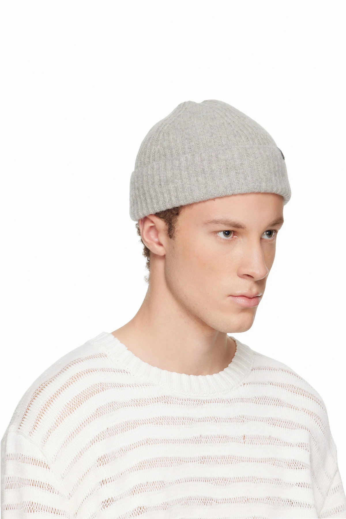 Gray Ribbed Wool Beanie