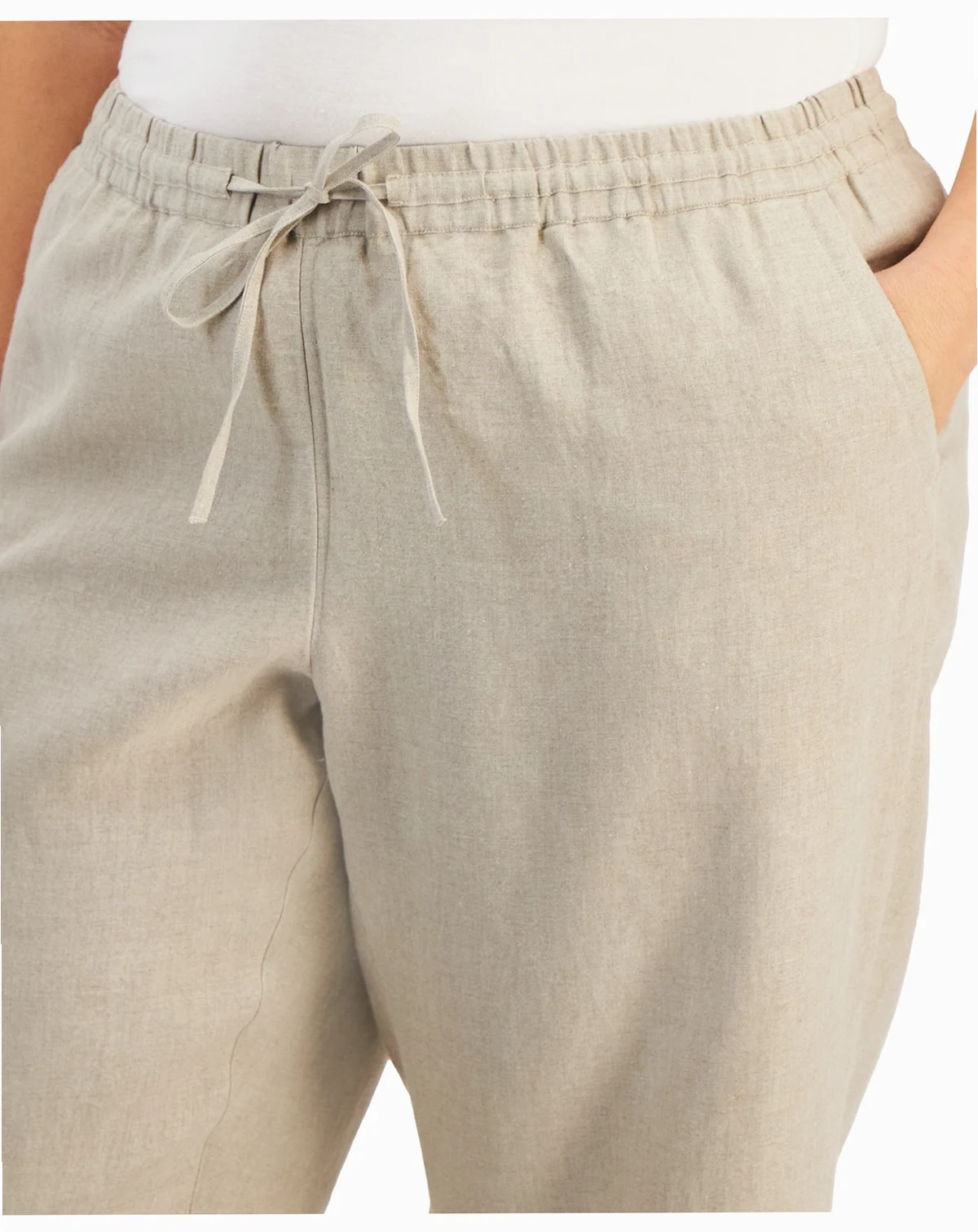 Crafted from lightweight linen for beautifully breezy style, Charter Club's mid rise pants are finished with an adjustable drawstring waist for a perfect fit.
