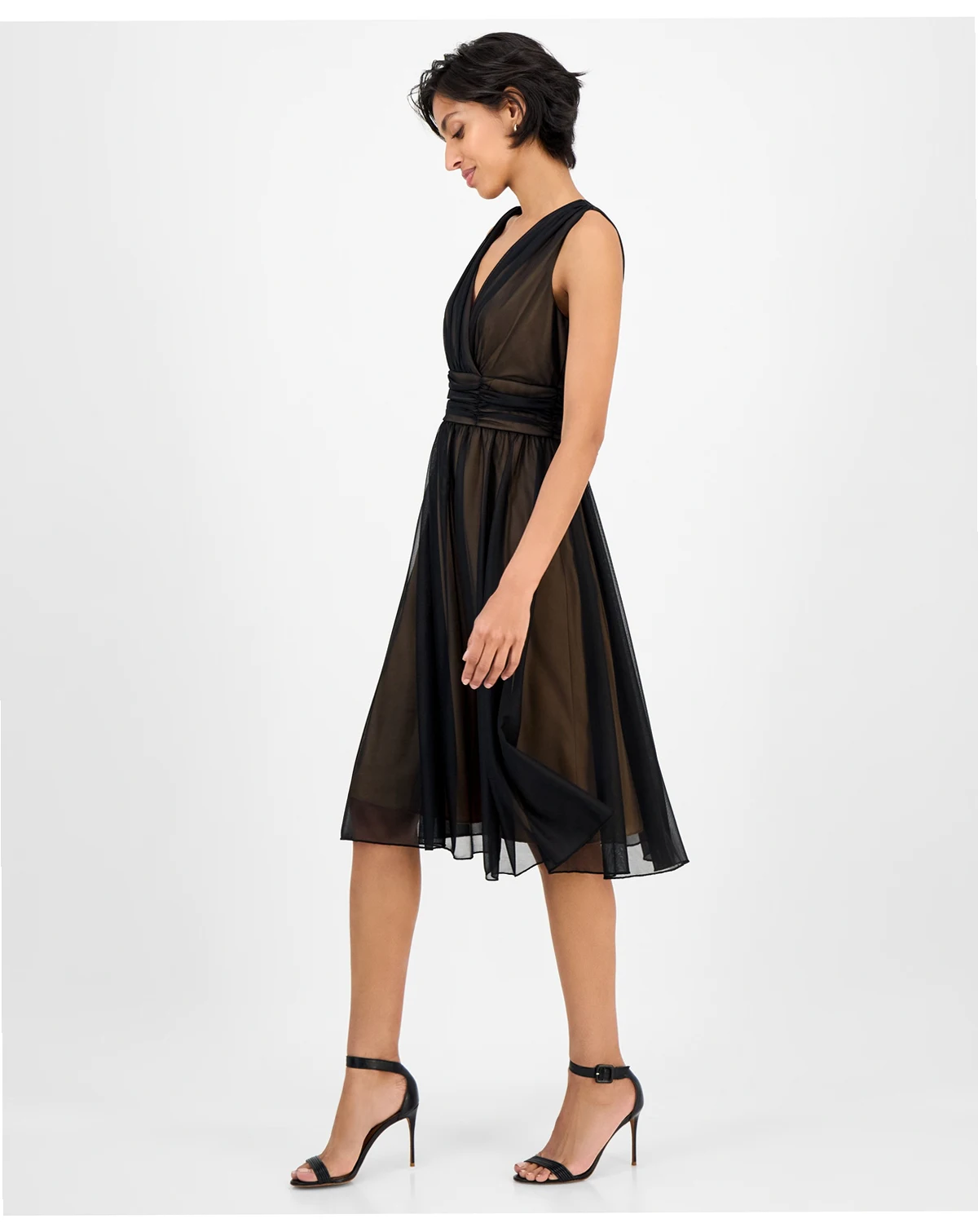 Approx. 42" long; Designed to fit and flatter frames 5'4" and under; Falls below the knee to lower calf