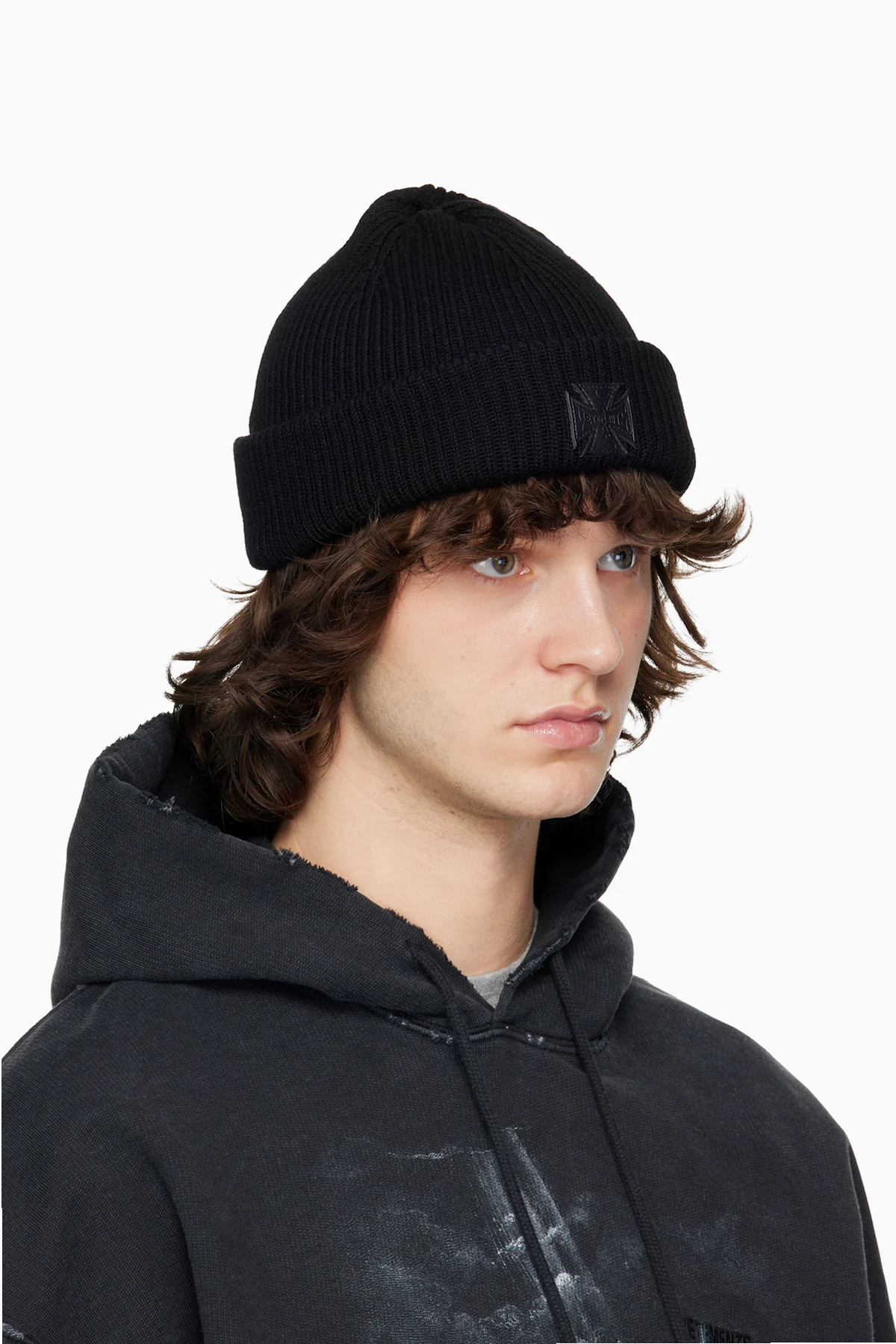 Black Leather Biker Cross Label Beanie