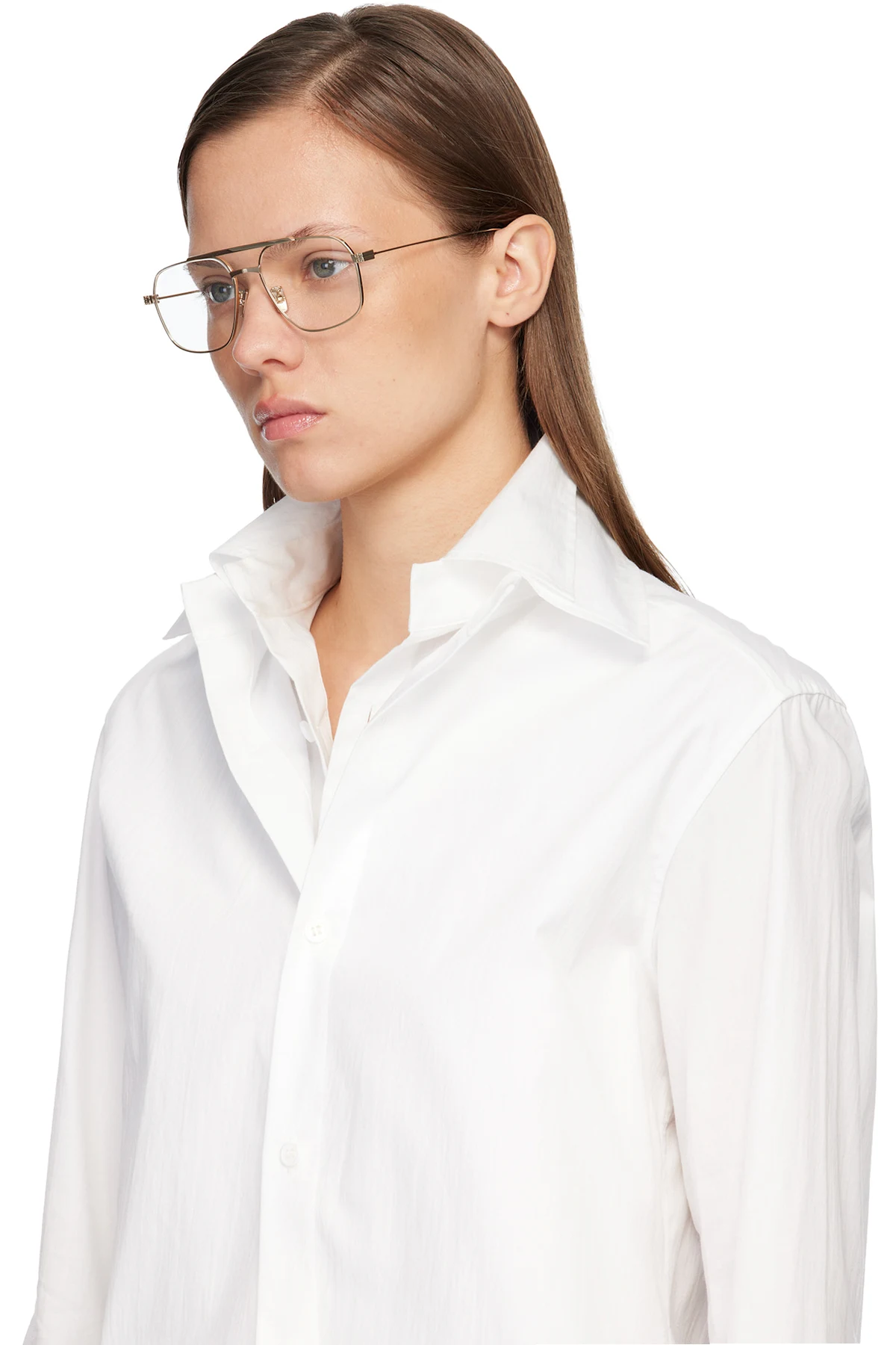 Aviator-style metal-frame optical glasses.