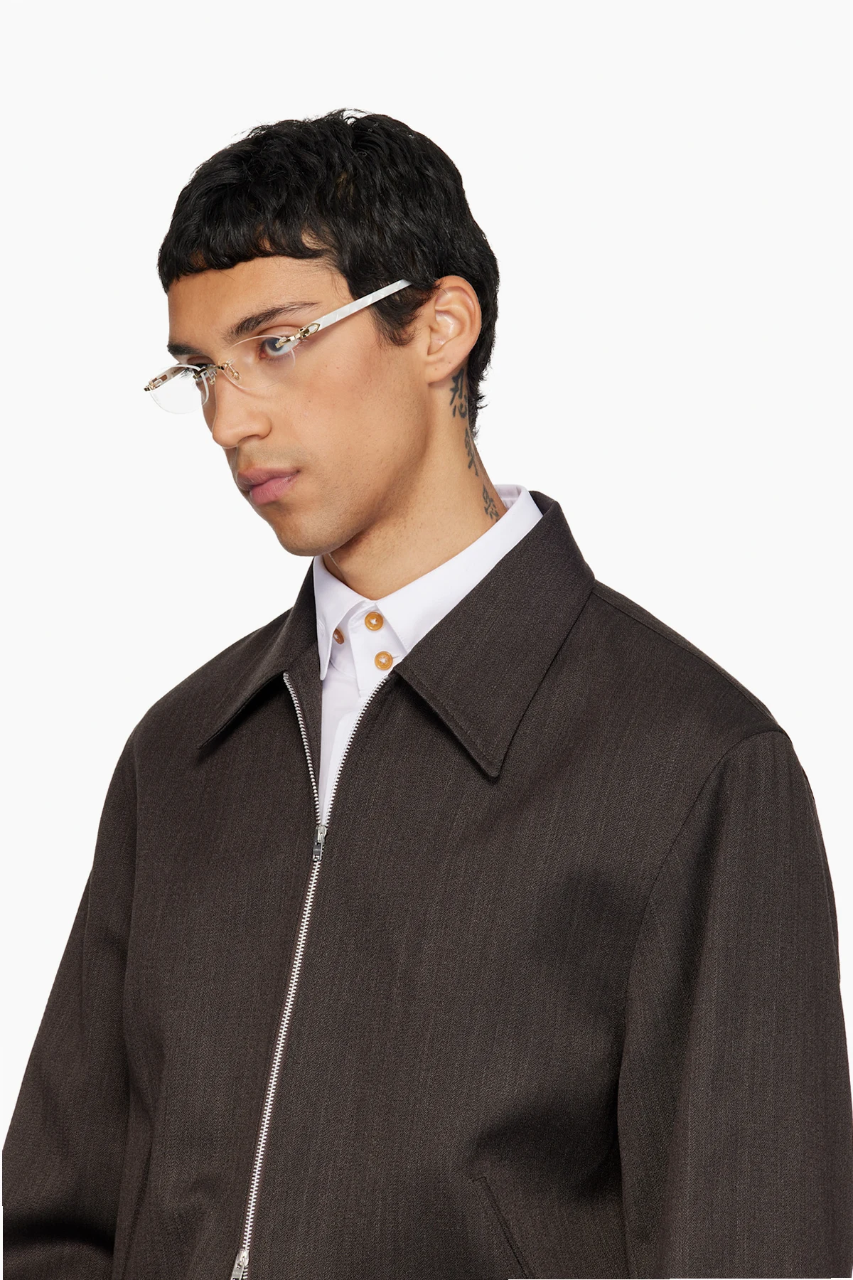 Oval rimless metal-frame optical glasses.