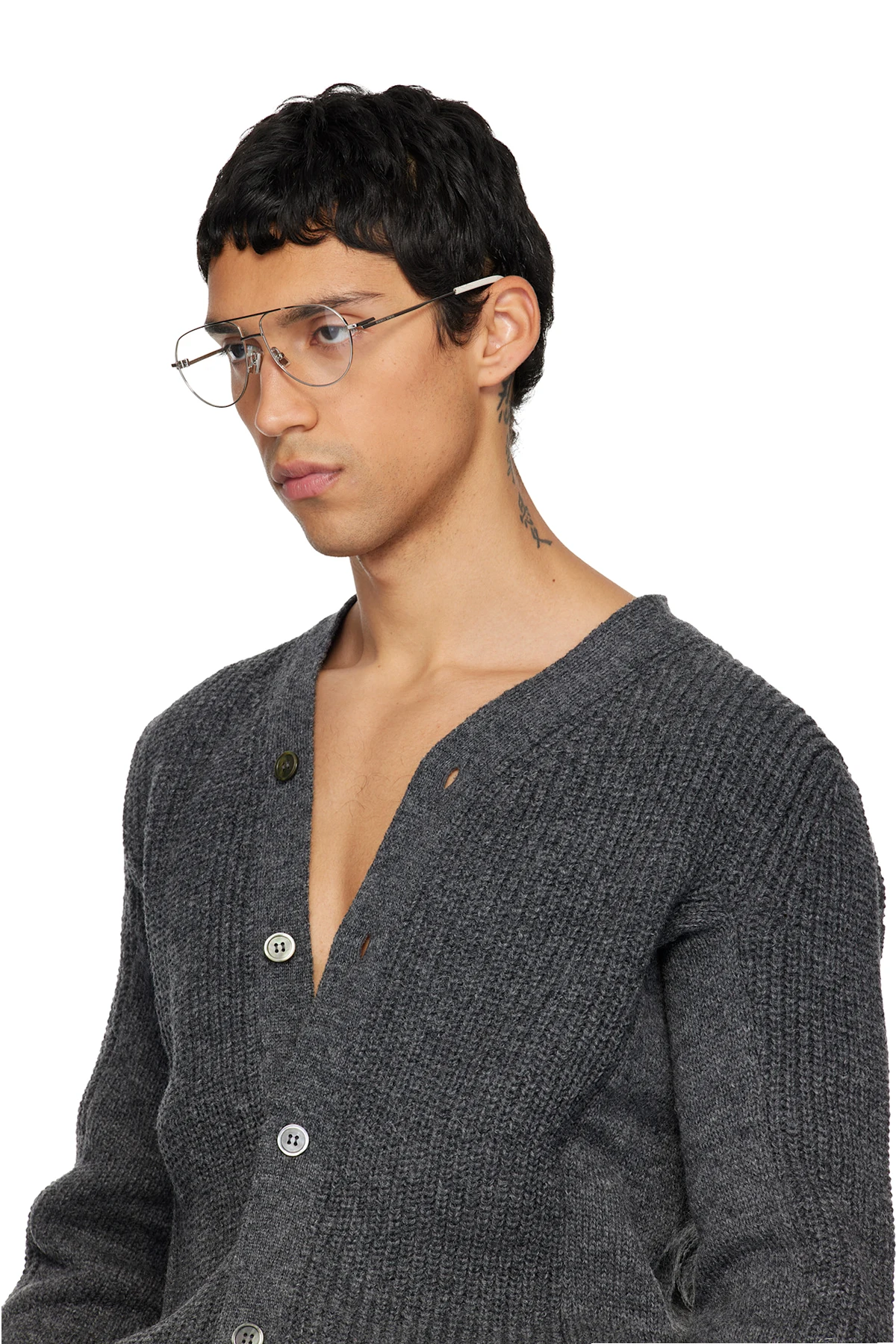 Aviator-style metal-frame optical glasses.