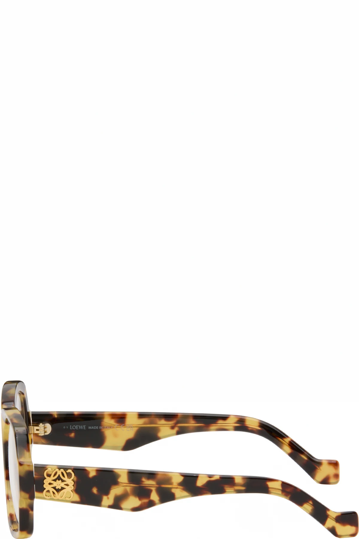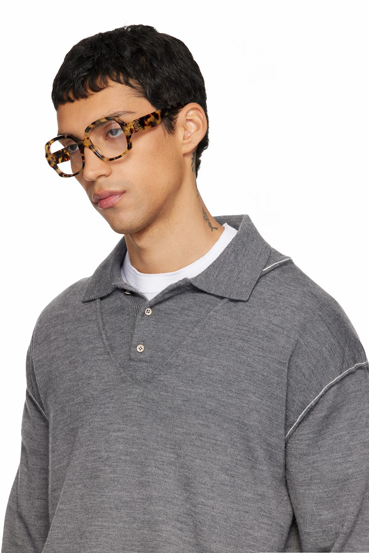 Square semi-transparent tortoiseshell acetate-frame optical glasses.