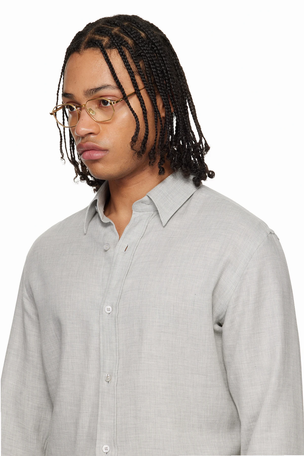 Handcrafted hexagonal titanium-frame optical glasses.