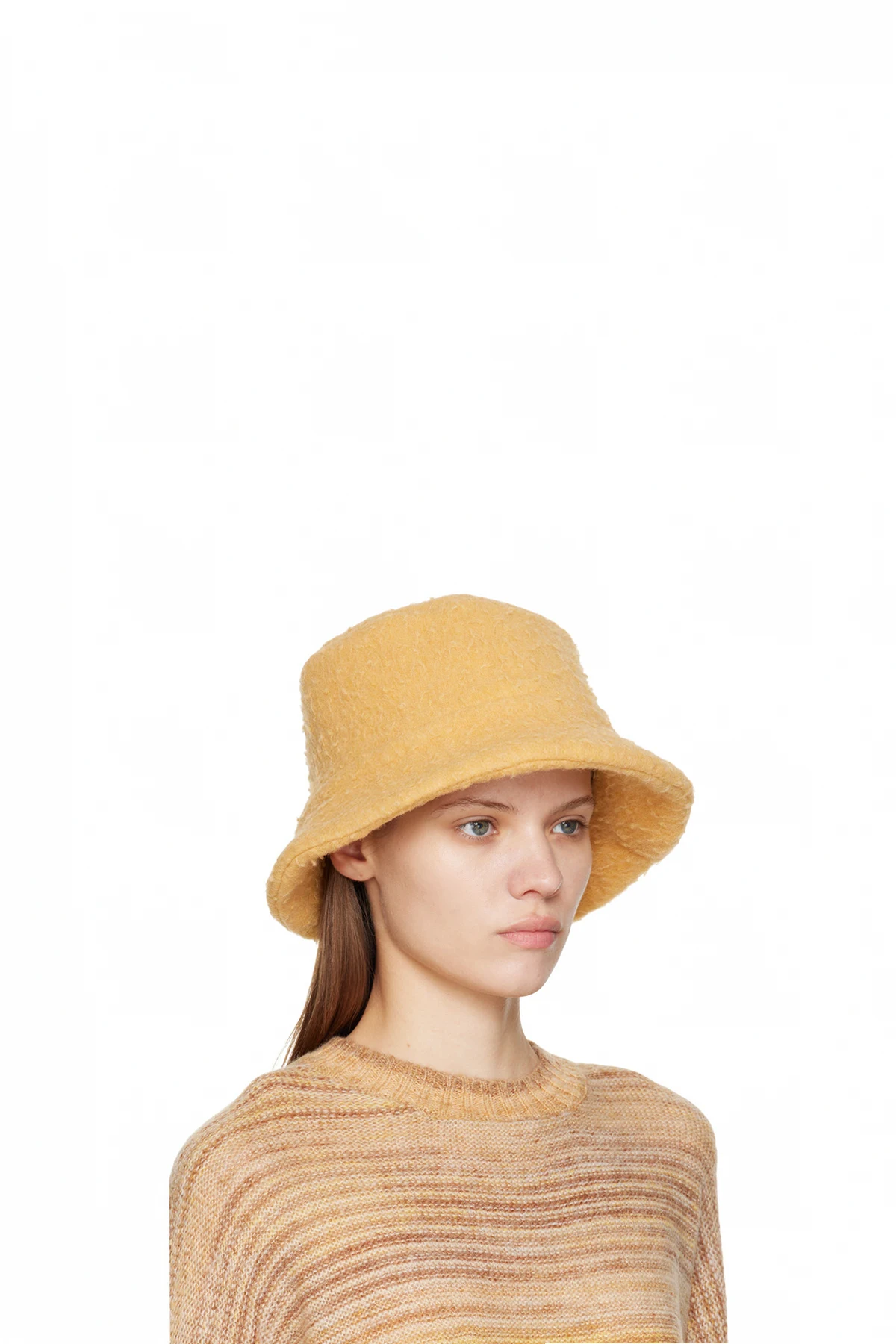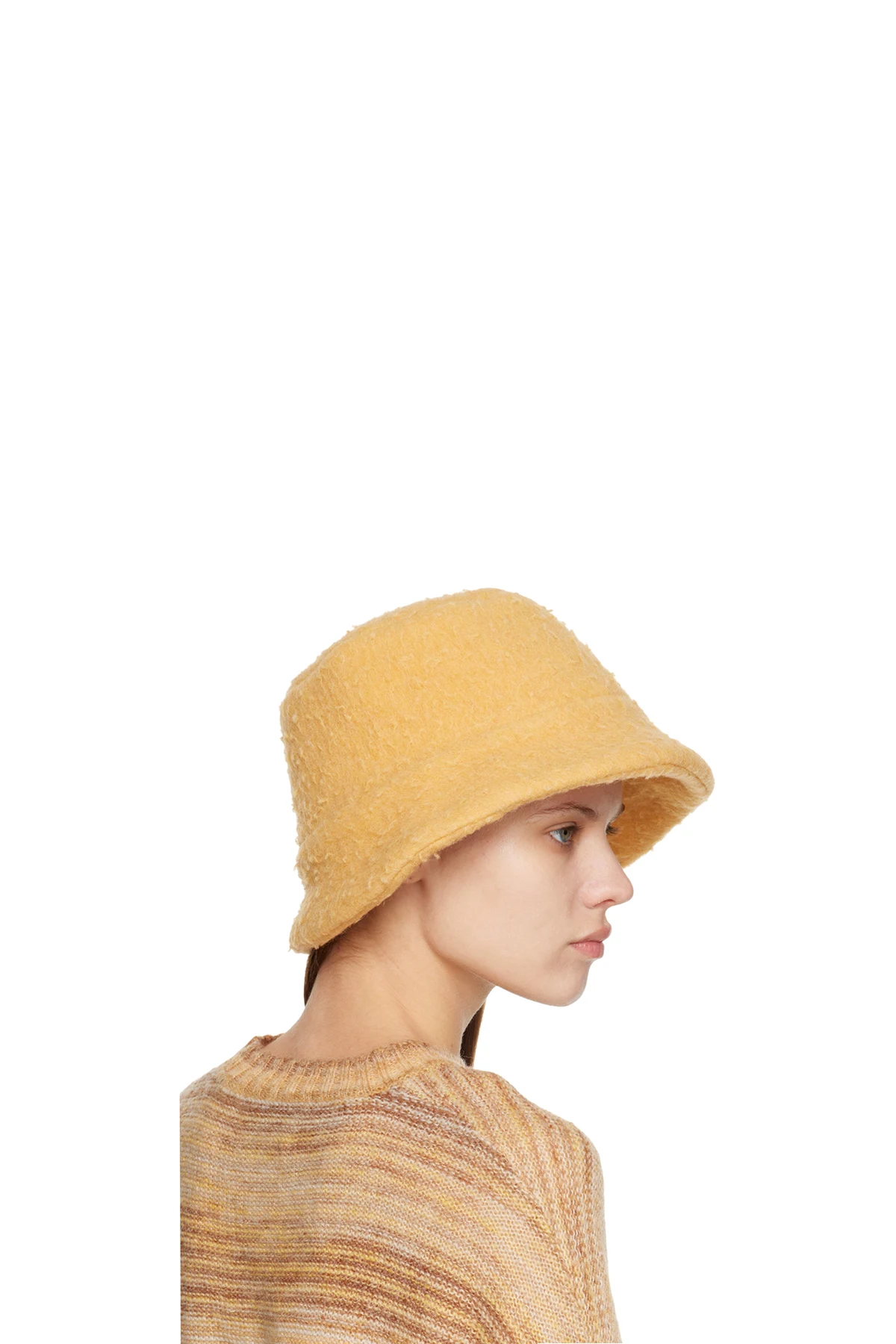 Felted wool and polyester-blend bucket hat in yellow. Unlined.