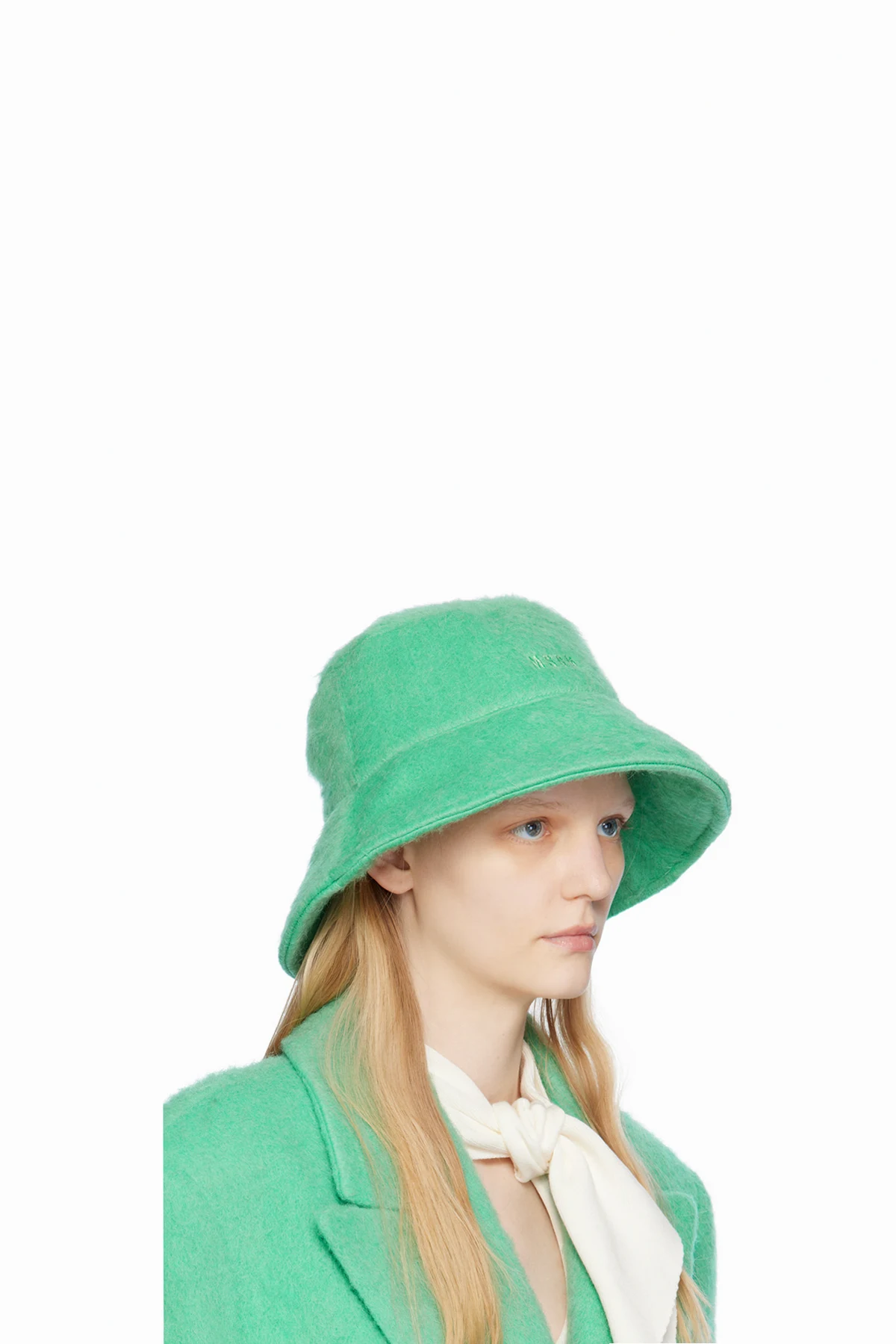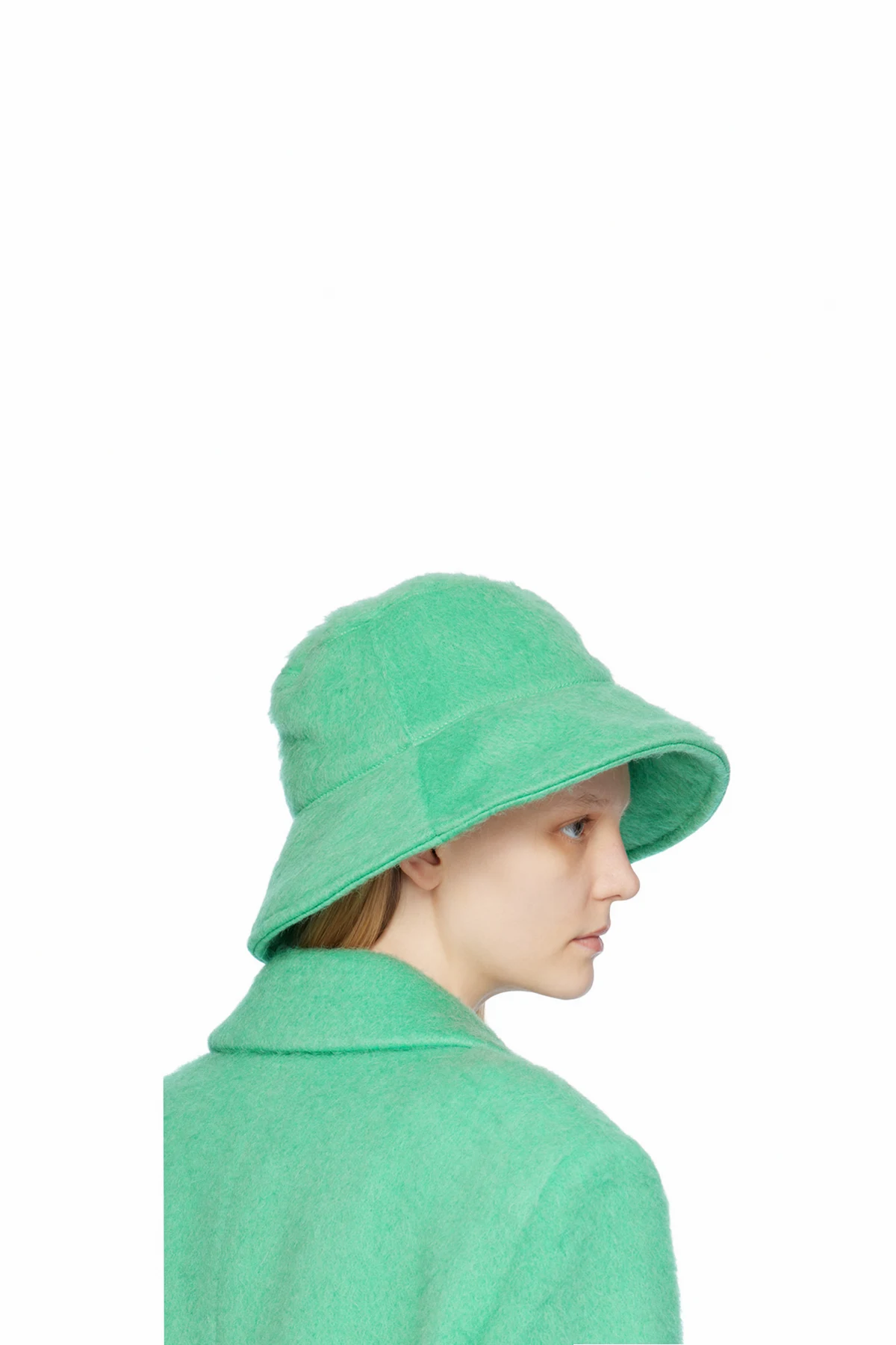Shag knit virgin wool-blend bucket hat in green.