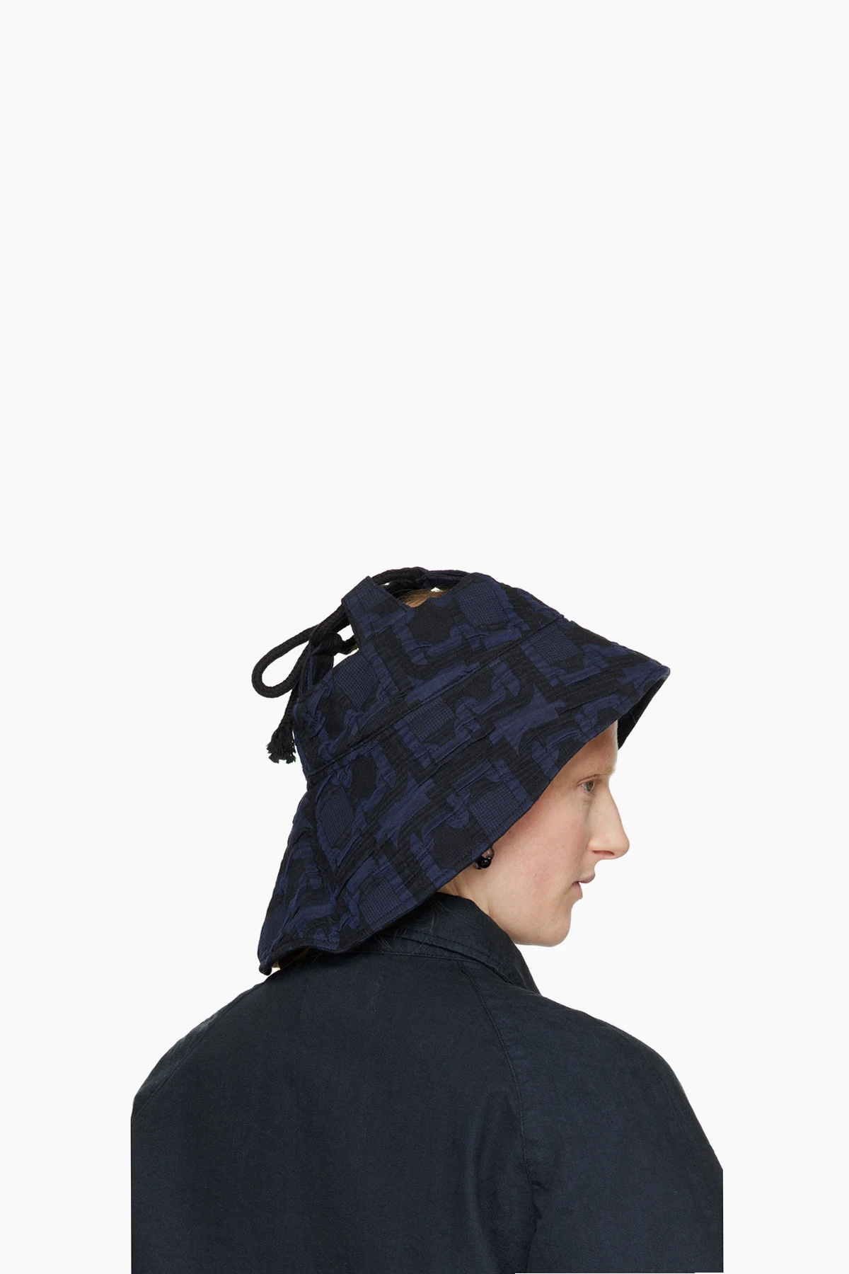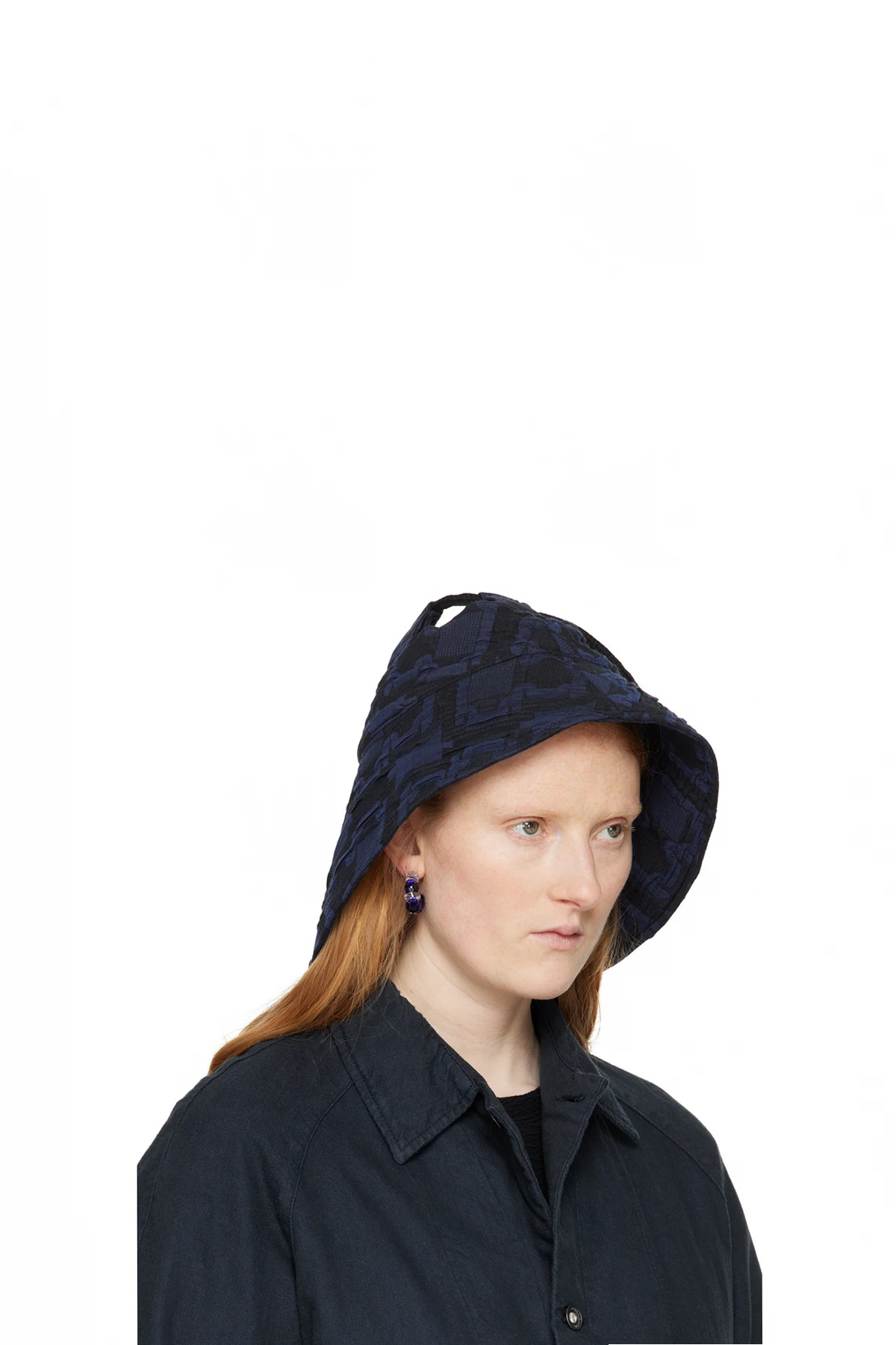 Plain-woven organic cotton- and recycled polyester-blend bucket hat in black and navy.
