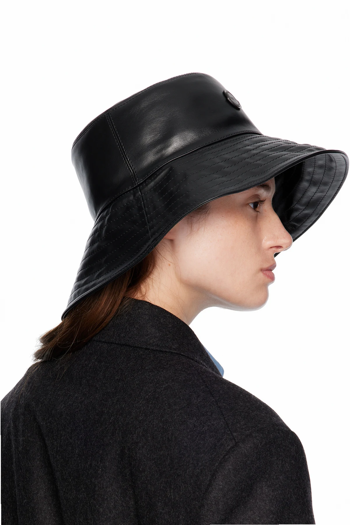 Buffed leather bucket hat.