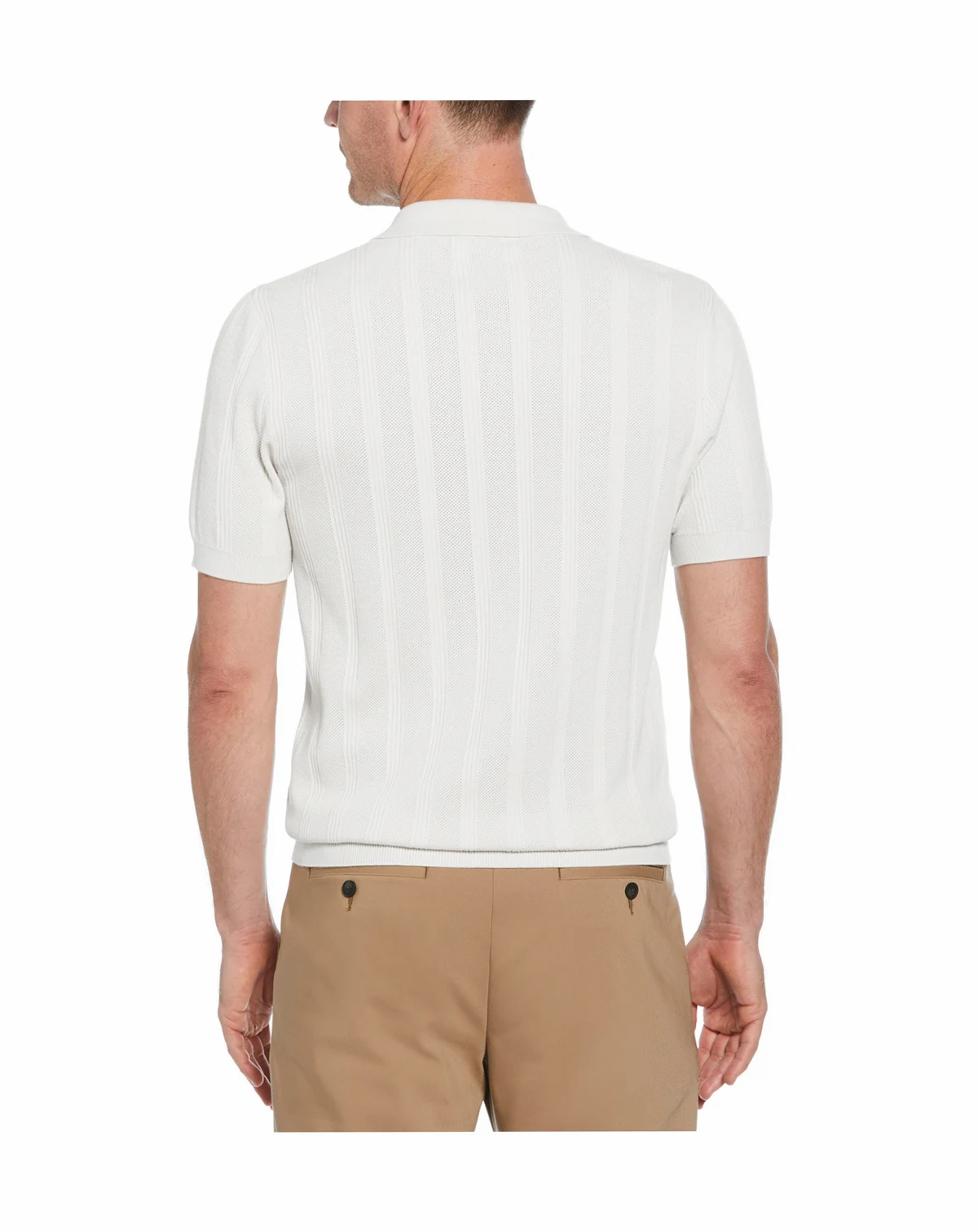 With its buttonless open design and mesh stripe pattern, this signature polo from Perry Ellis offers a modern twist on a classic casual look.