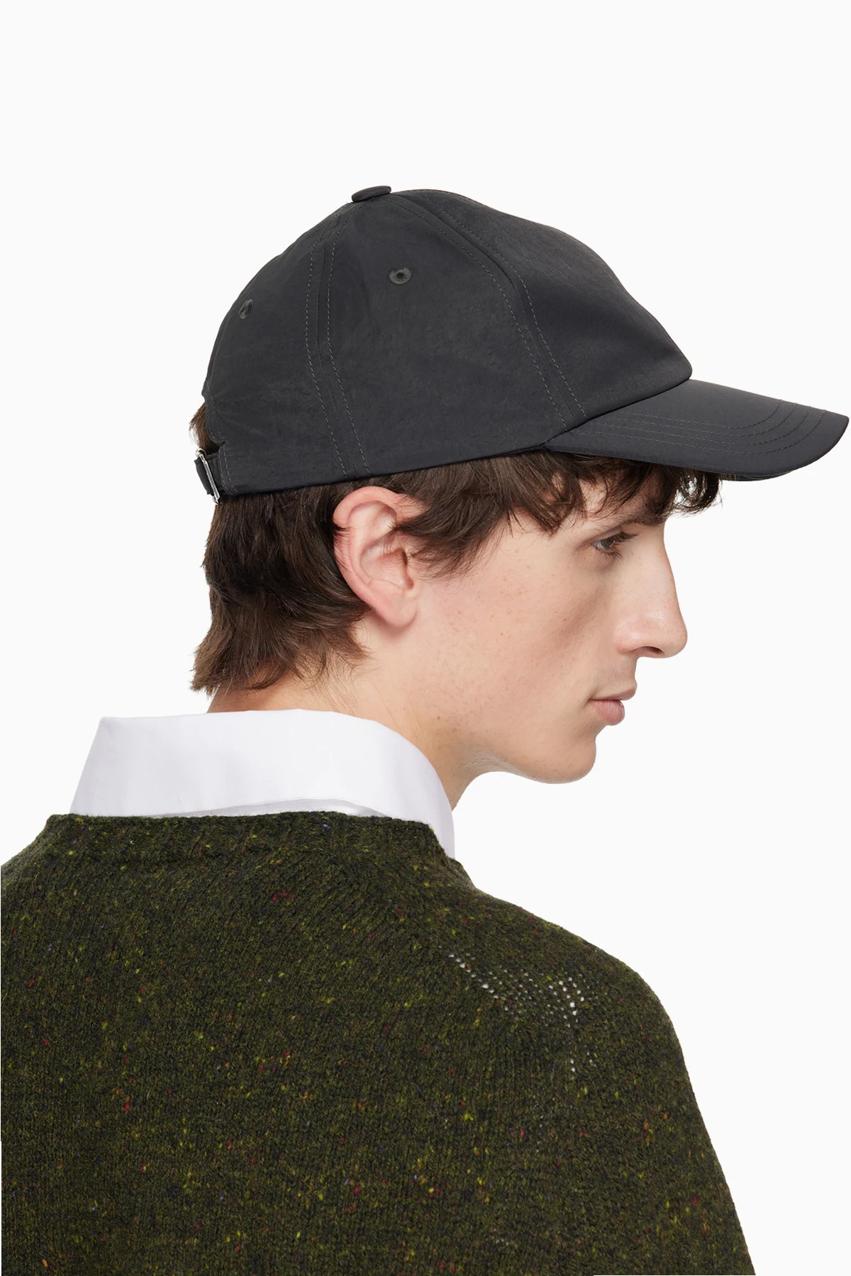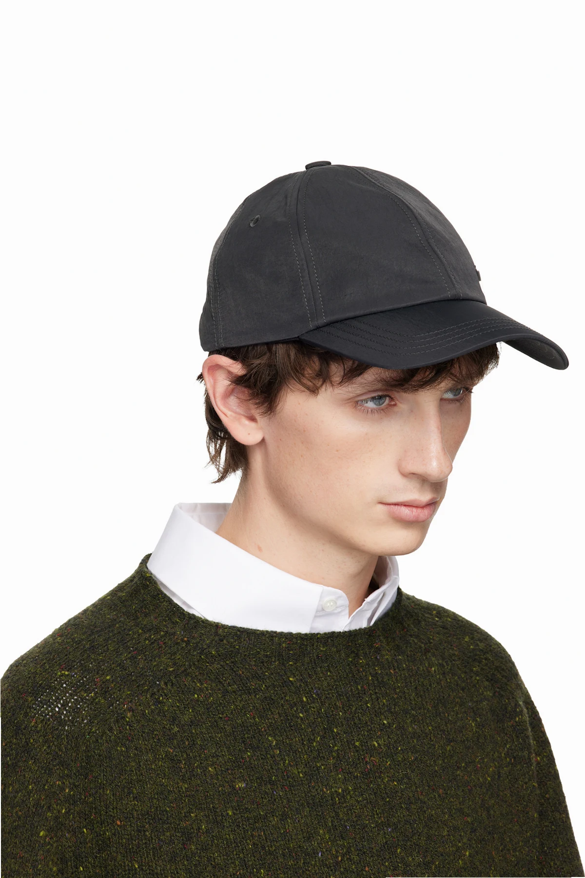 Crinkled nylon taffeta cap.