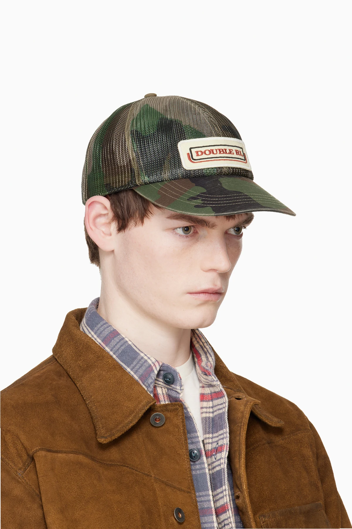 Khaki Logo-Patch Camo Mesh Trucker Cap