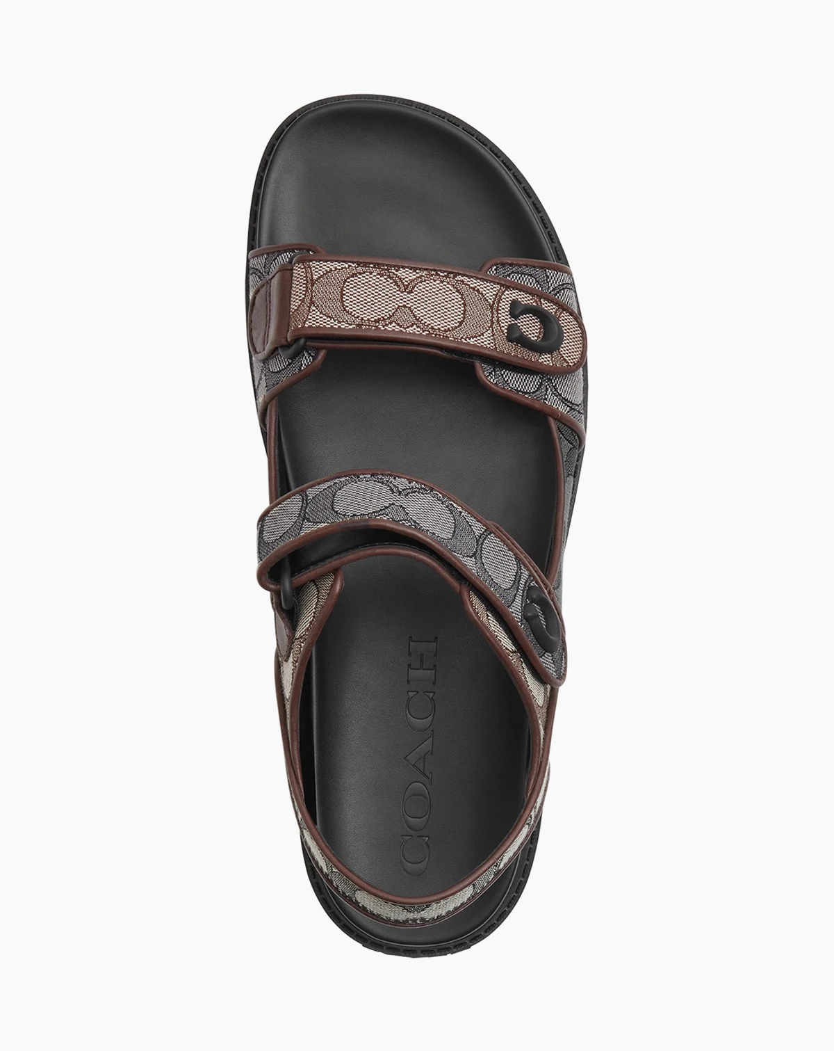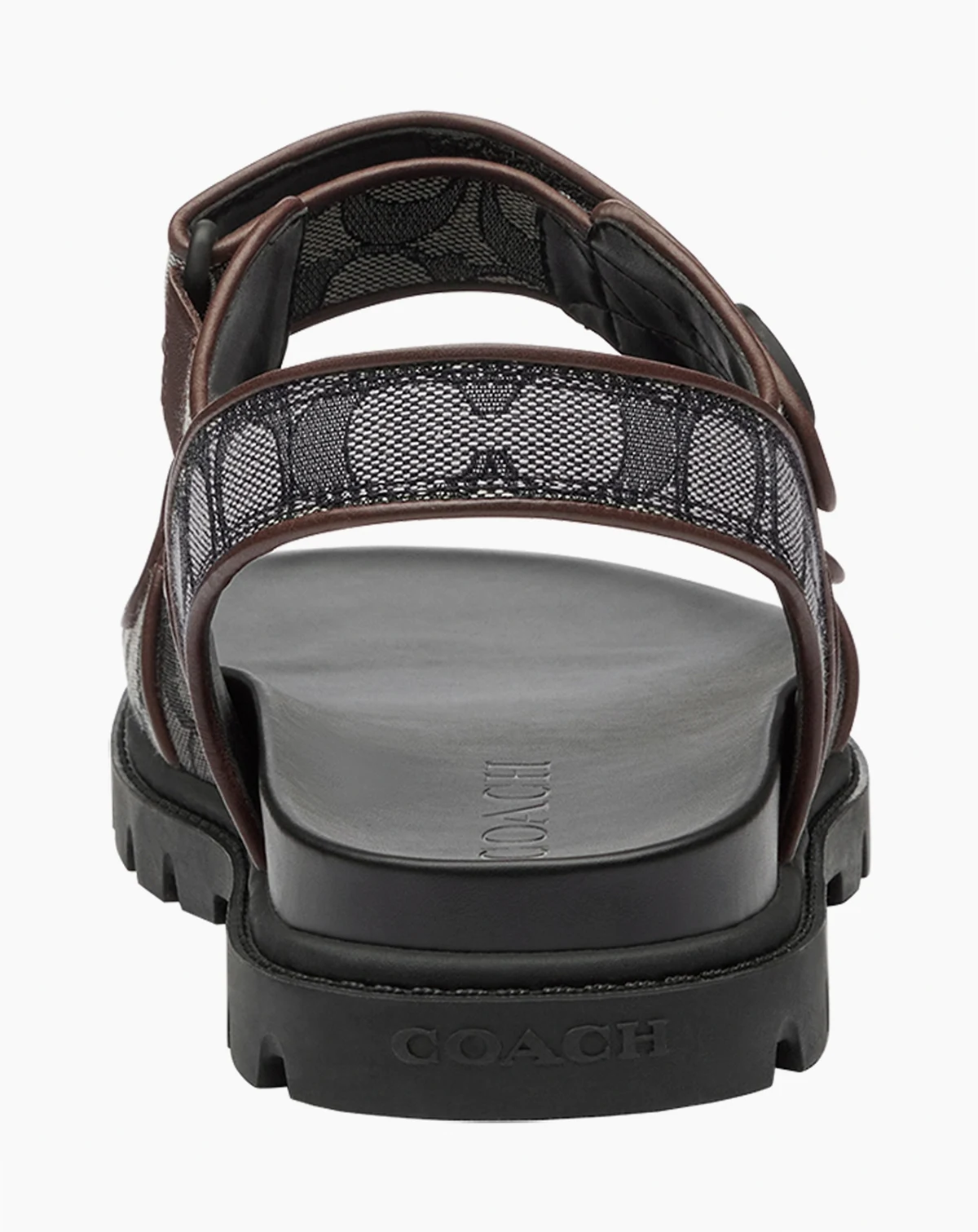 Make a stylish statement with these COACH sandals, showcasing a signature jacquard pattern for a distinguished look. An easy hook-and-loop closure ensures a secure and adjustable fit.