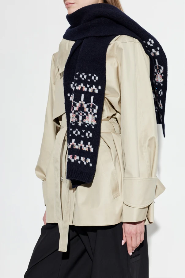 Experience the distinguished refinement of the Loewe Wool Scarf , a statement accessory meticulously crafted for men who appreciate enduring elegance. Designed in a classic rectangular silhouette, this scarf showcases an exceptional geometric and ornamental motif—an artful homage to traditional Norwegian knitwear—brought to life through a sophisticated interplay of navy, white, pink, blue, and green.