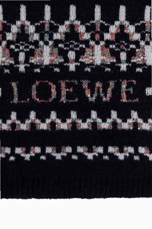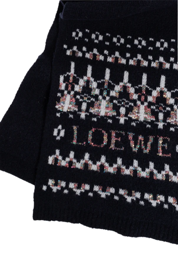 The luxurious, high-quality wool is skillfully woven, presenting a bold, tactile texture that speaks to its exclusivity. At its heart, the Loewe name is seamlessly integrated into the pattern, an emblem of impeccable taste. Every edge is exquisitely finished, ensuring the scarf's superior longevity and comfort for the discerning wearer.