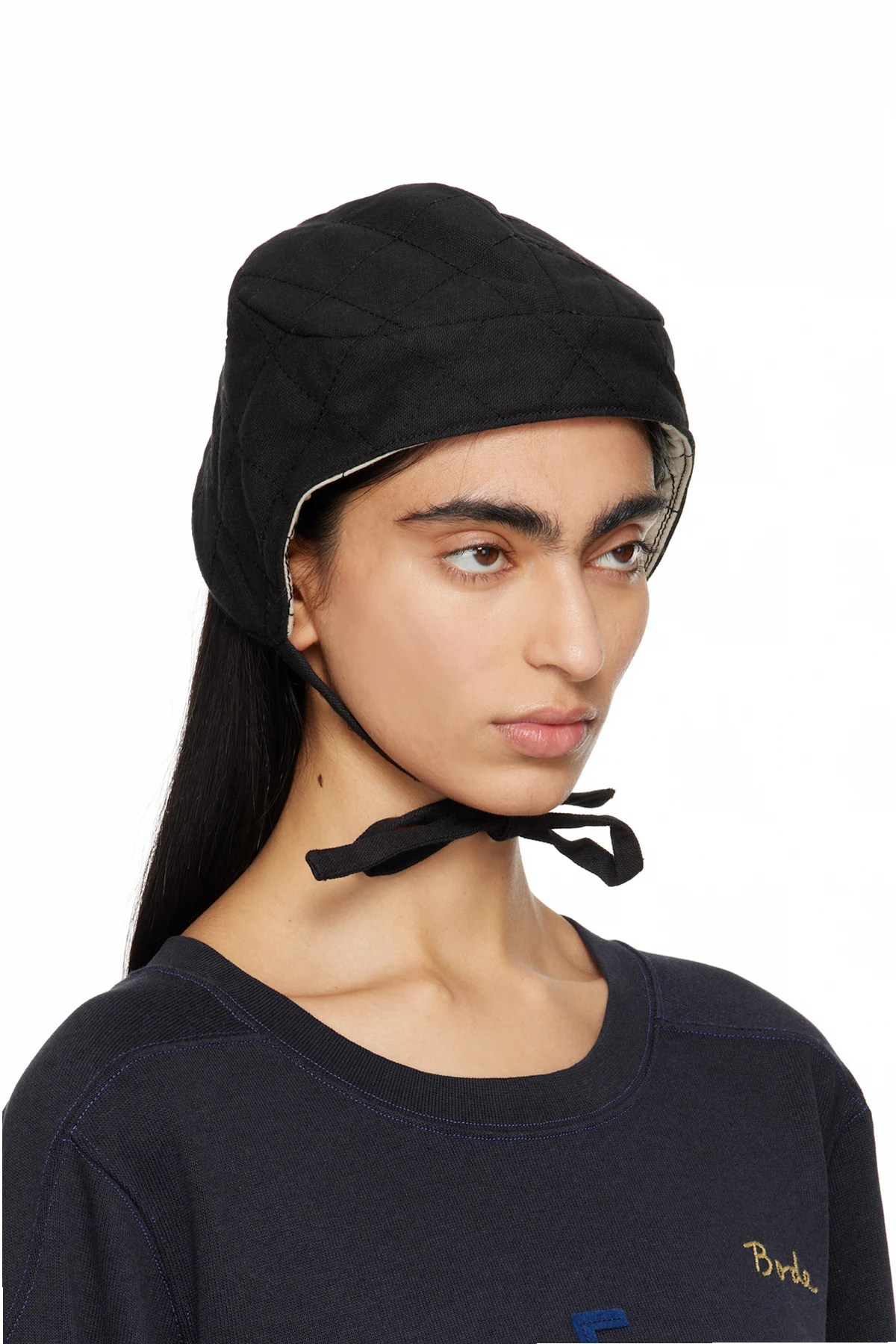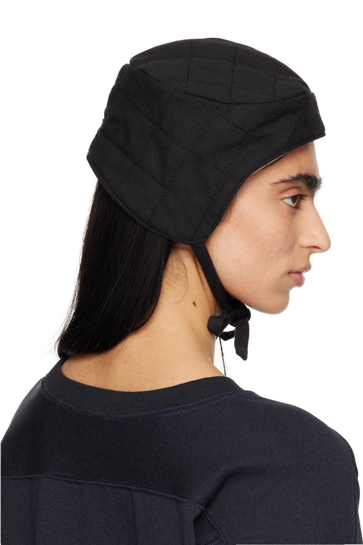 Padded and quilted cotton canvas cap in black.