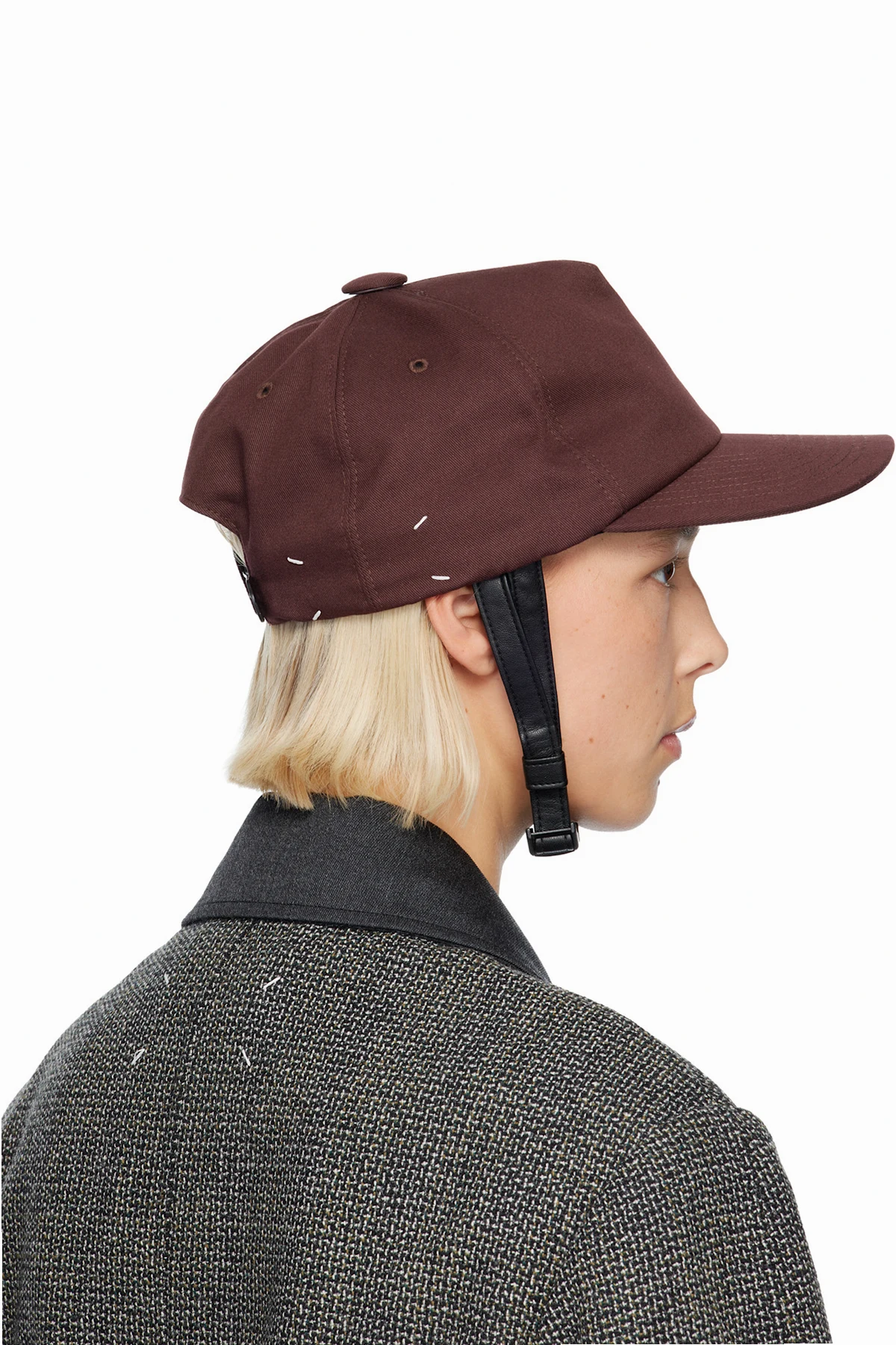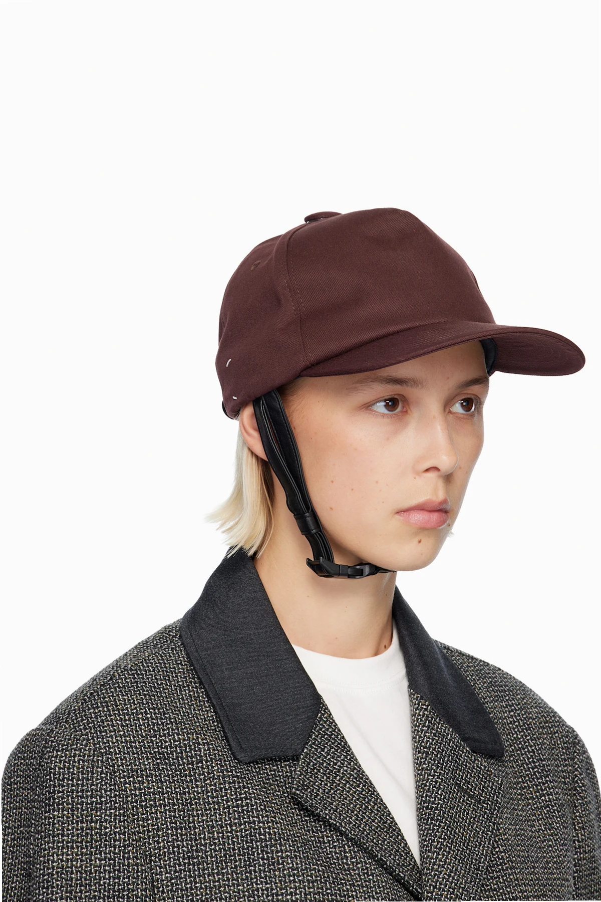 · Adjustable faux-leather chin strap