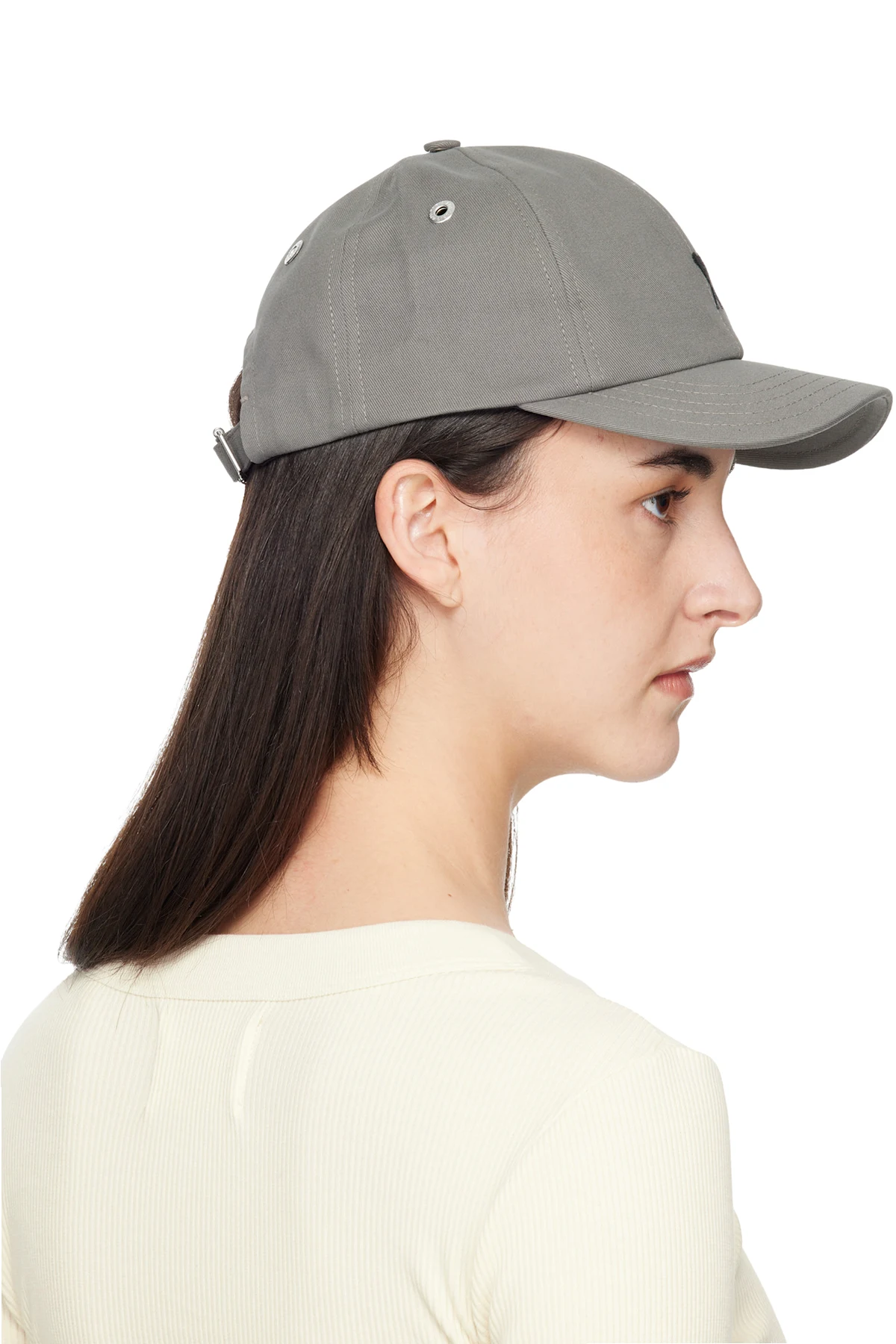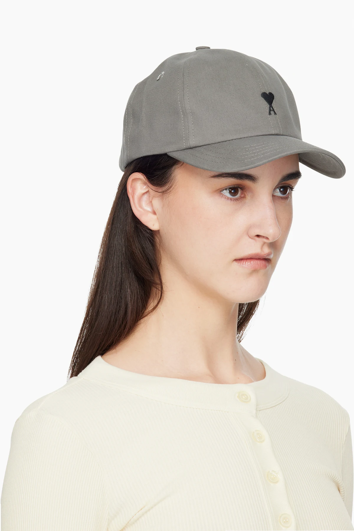 Gray Cotton Ami de Coeur Embroidery Cap