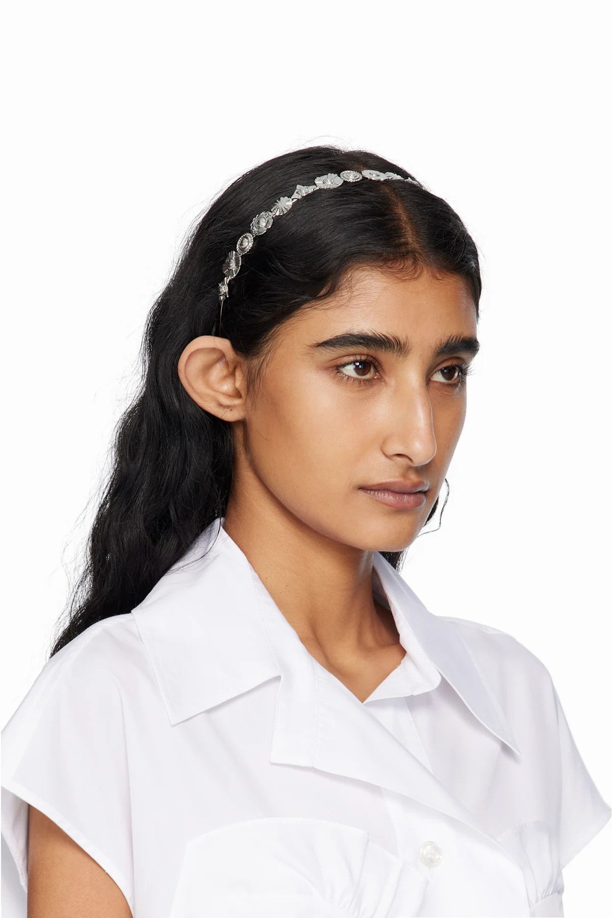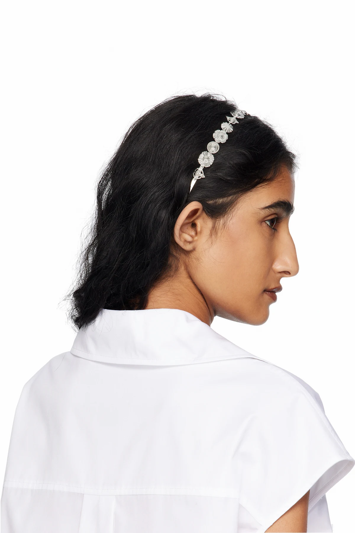 Headband in silver-tone brass.