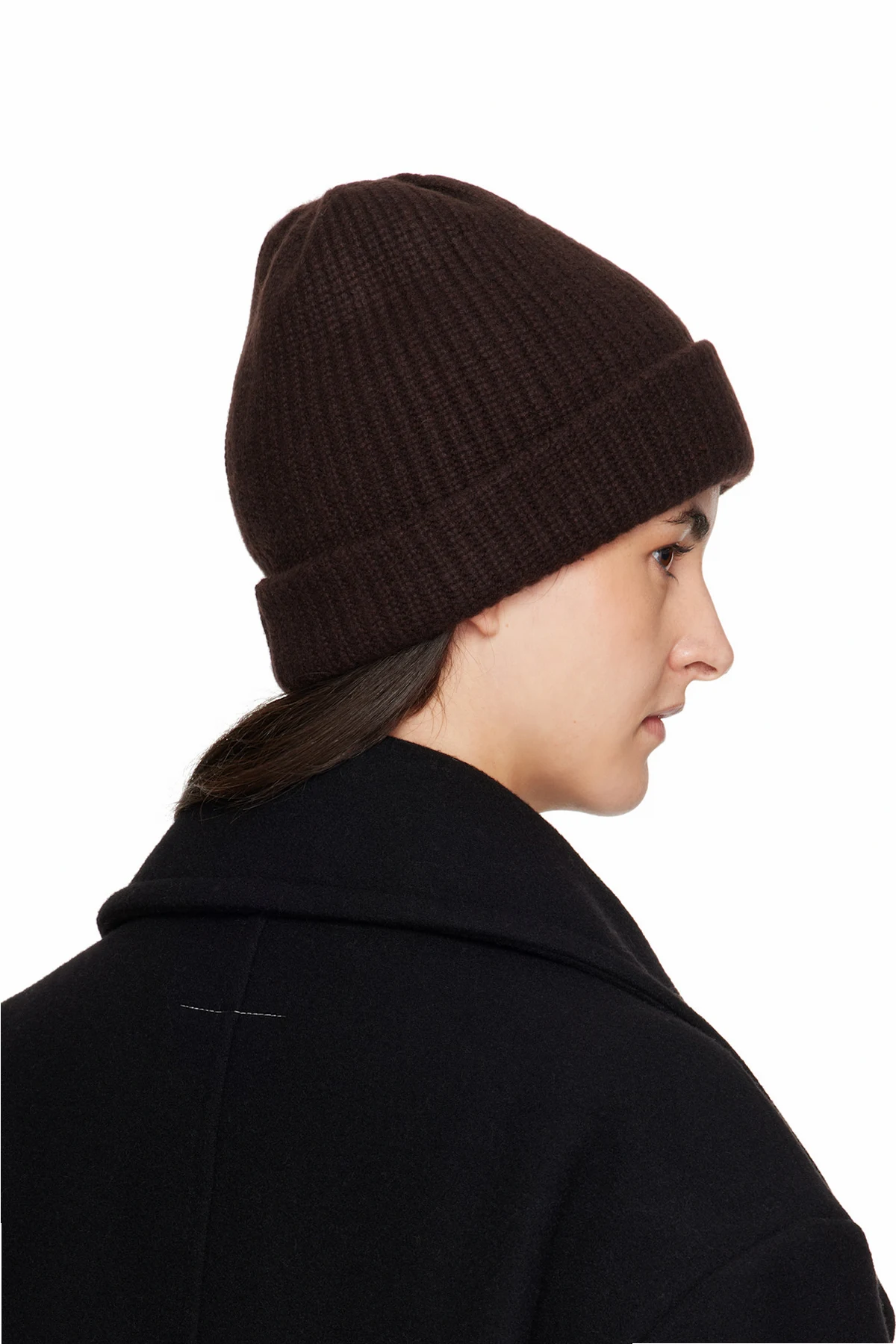 Rib-knit cashmere beanie.