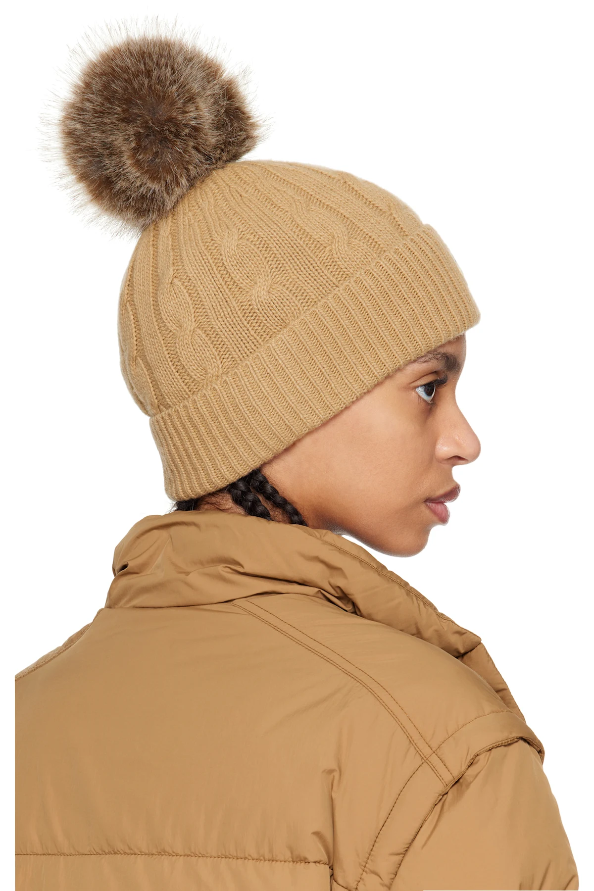 · Faux-fur pom-pom at crown