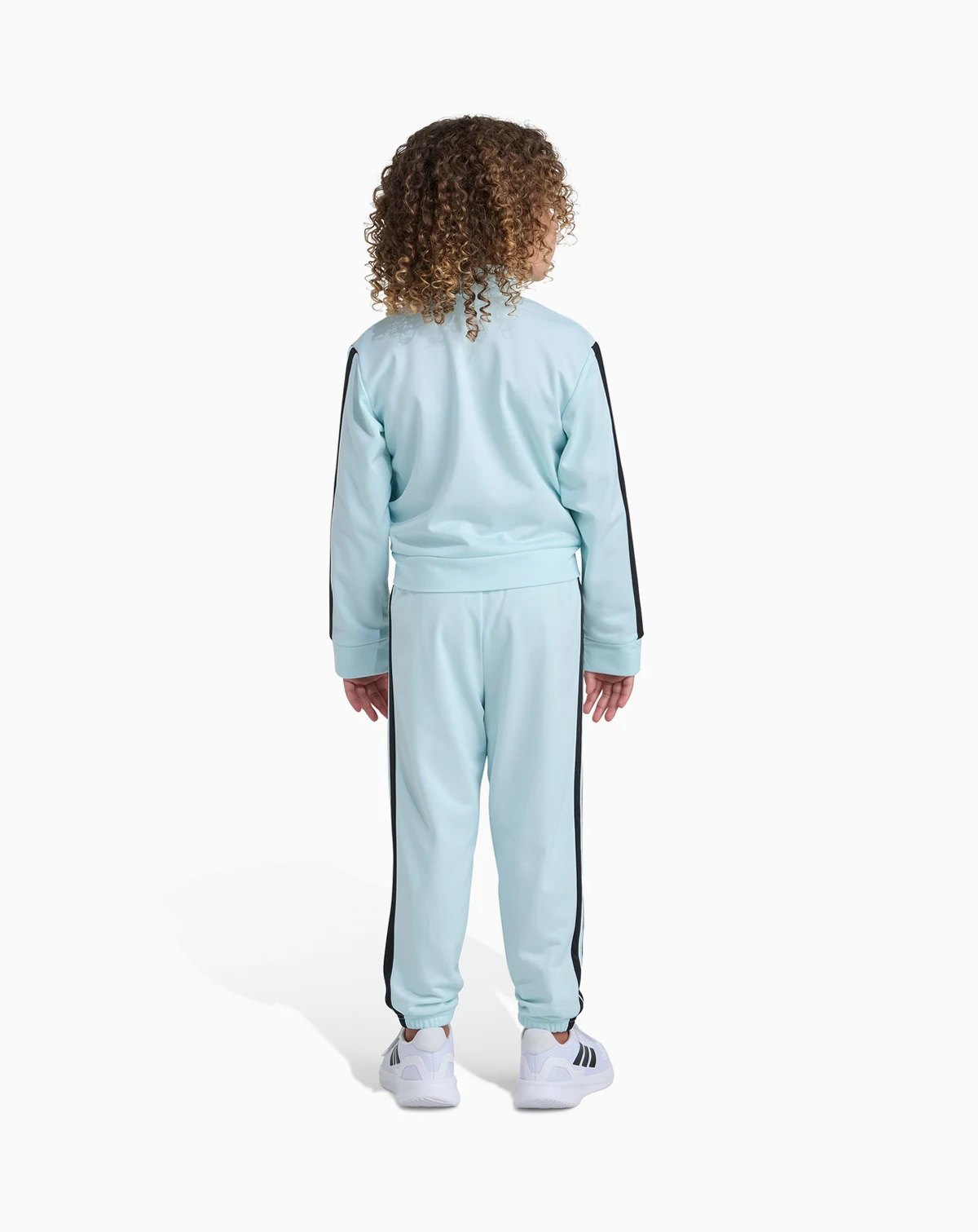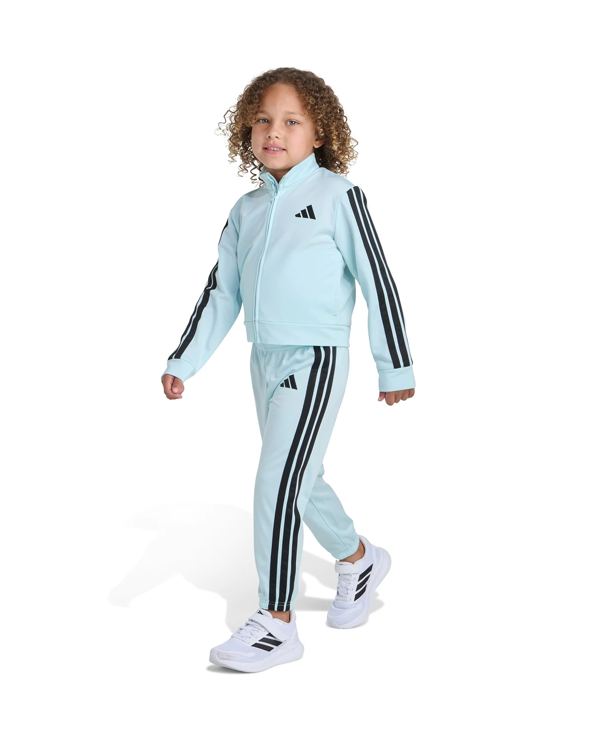 Featuring a full-zip jacket and matching joggers, this adidas set is created in smooth polyester tricot with signature 3-stripes. Side pockets, an elastic waistband, and ribbed cuffs provide practical comfort, while the regular fit allows easy movement for everyday play.