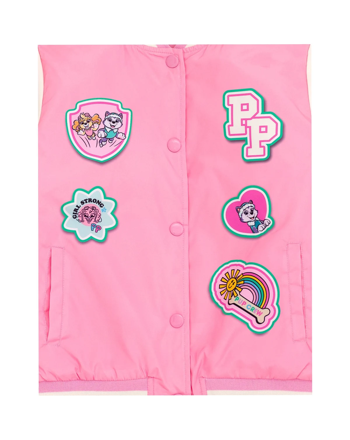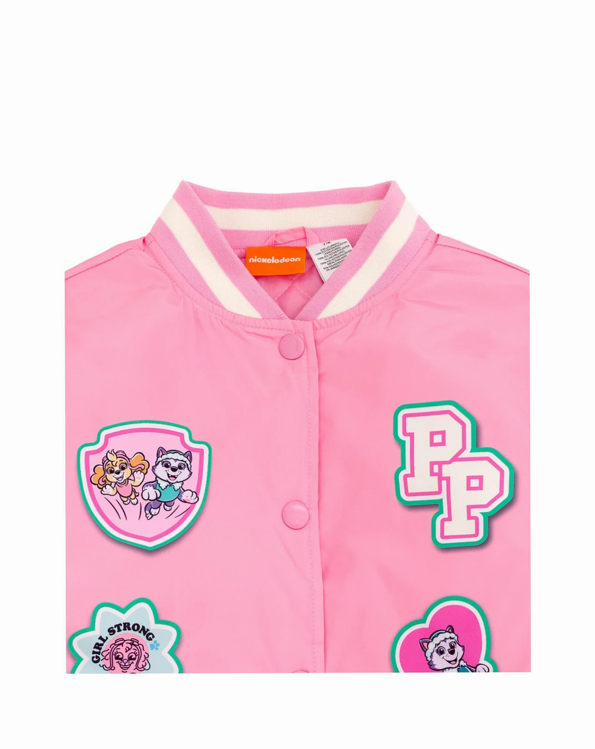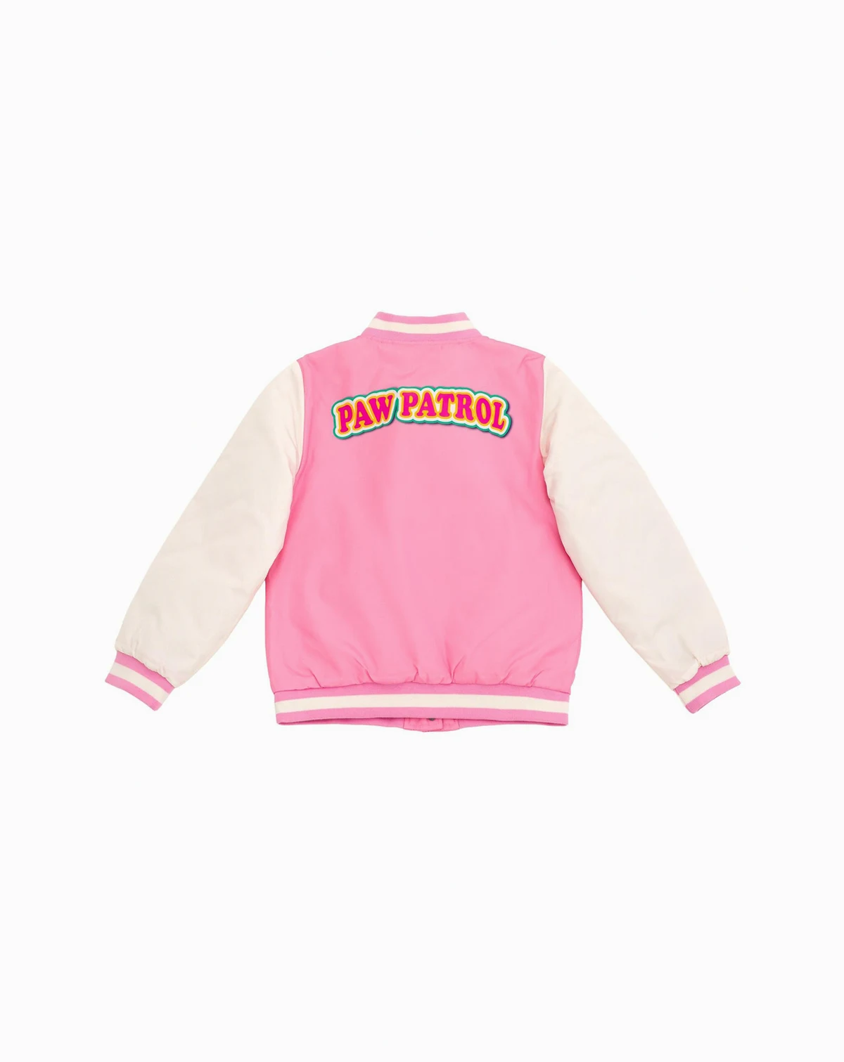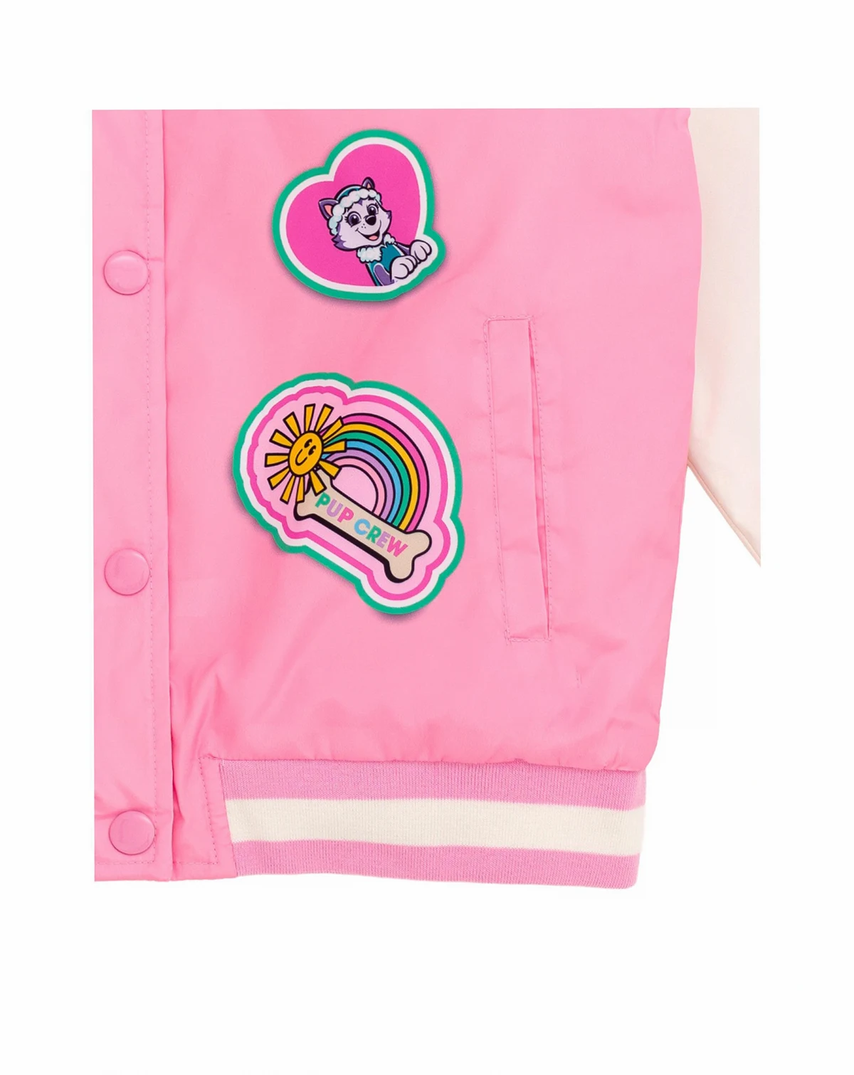Get your little girl ready for adventure with this Paw Patrol varsity bomber jacket. Featuring her favorite characters, Skye and Everest, this letterman jacket is perfect for any Paw Patrol fan. Made with a comfortable and durable fabric, it's perfect for everyday wear. The vibrant colors and fun de