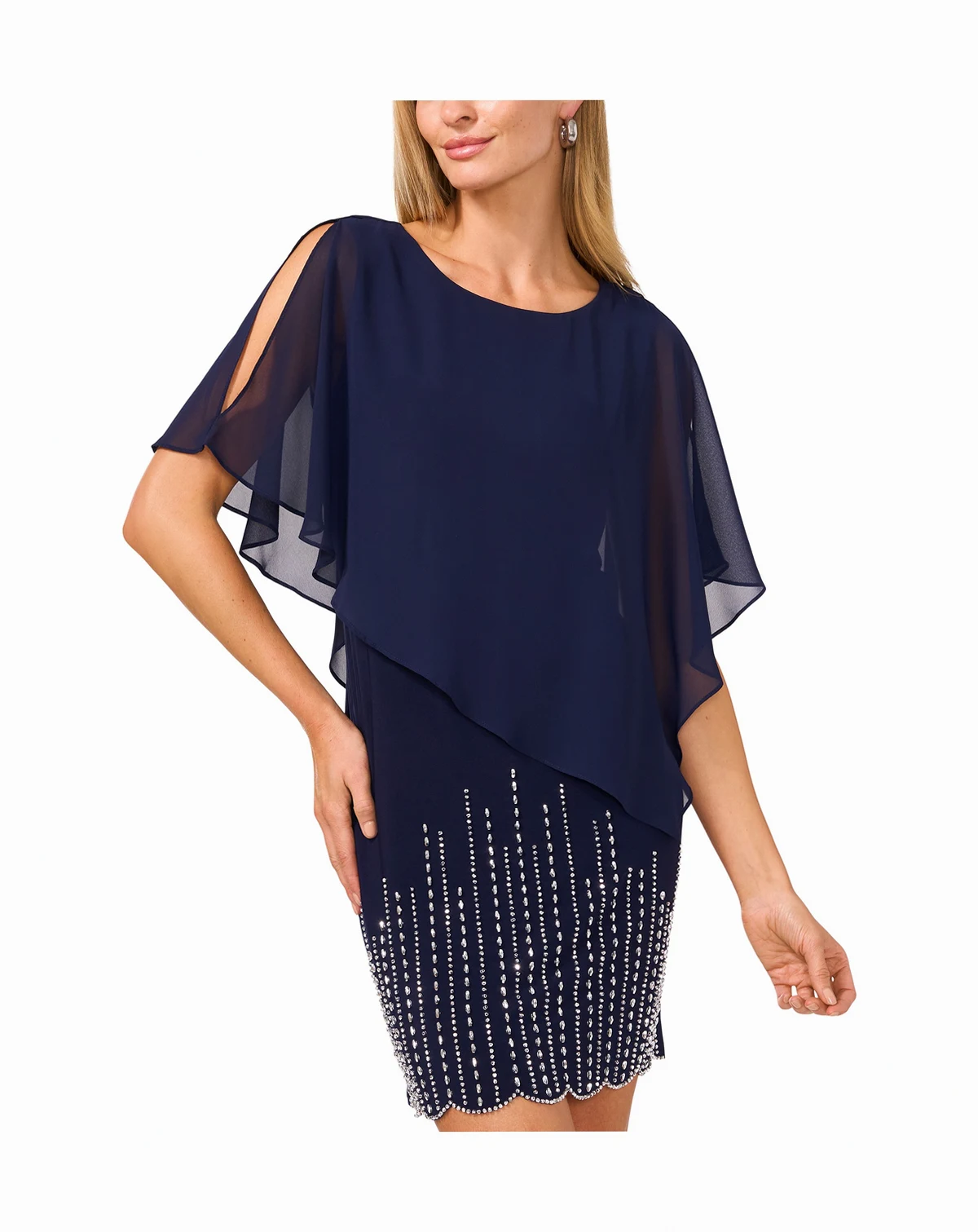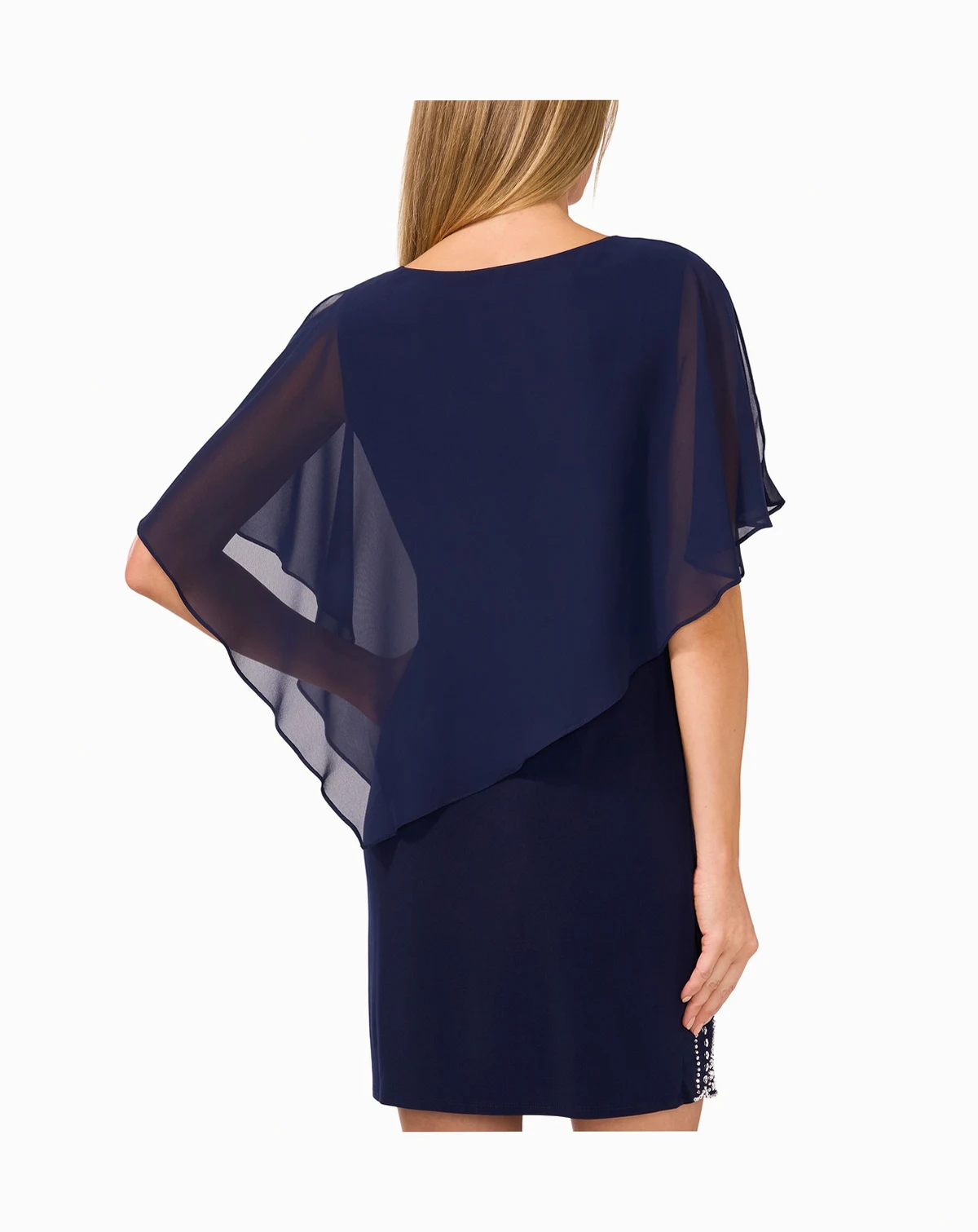 Shell: 95% polyester, 5% spandex; overlay: 100% polyester; IMPORTANT NOTE: This item arrives with a return tag attached and instructions for removal. Once the tag is removed from the dress, this item cannot be returned.