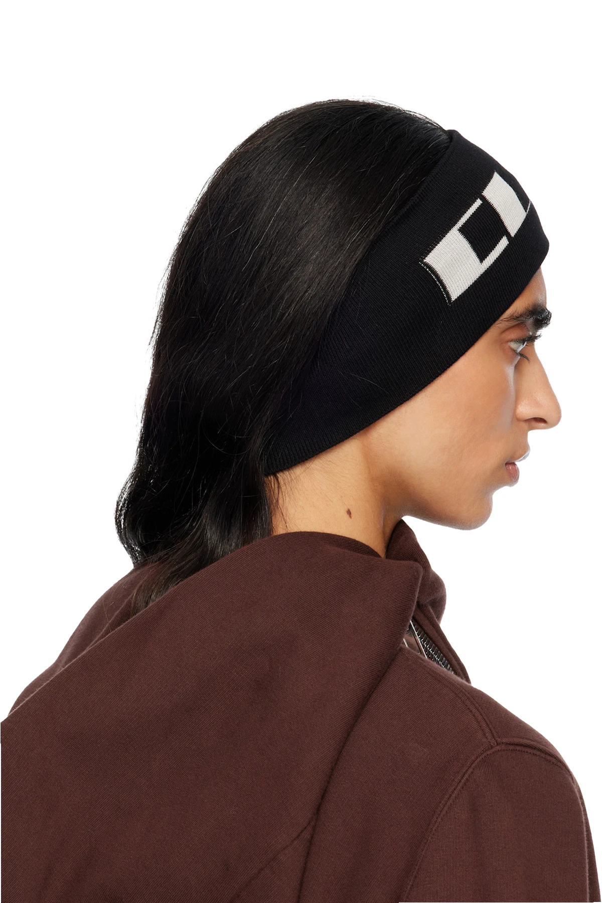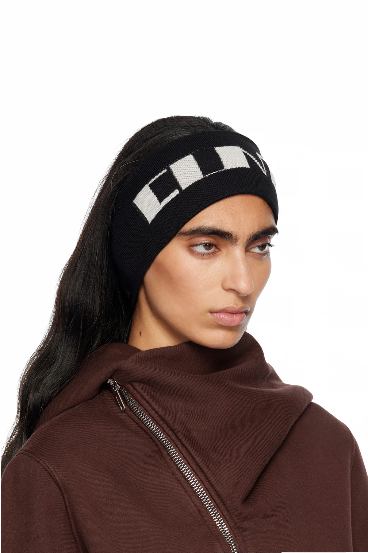 Rib-knit GOTS-certified organic cotton headband. Jacquard text at face.