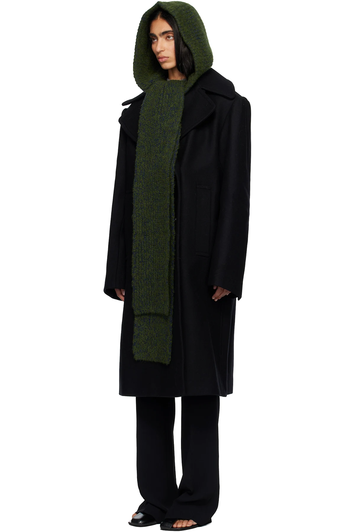 Green Hooded Wool Scarf