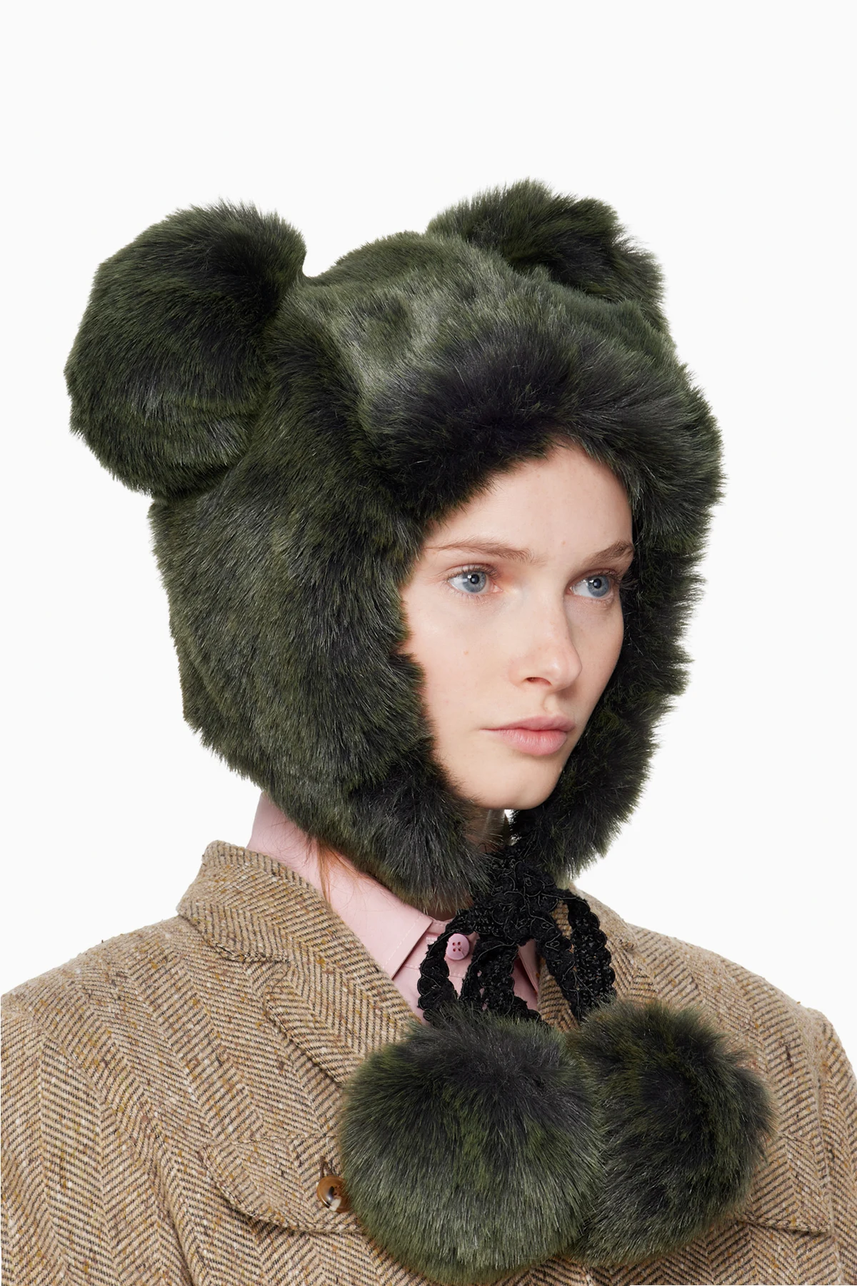 Faux-fur hat.