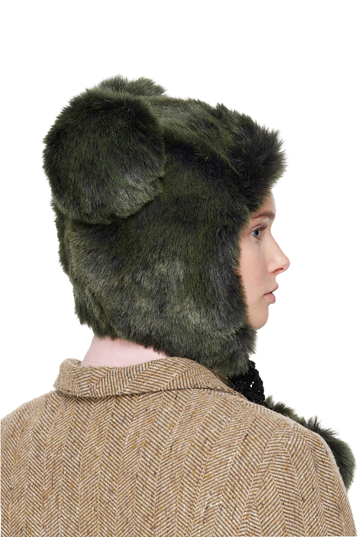 SSENSE Exclusive Green Faux Fur Teddy Bear Hat