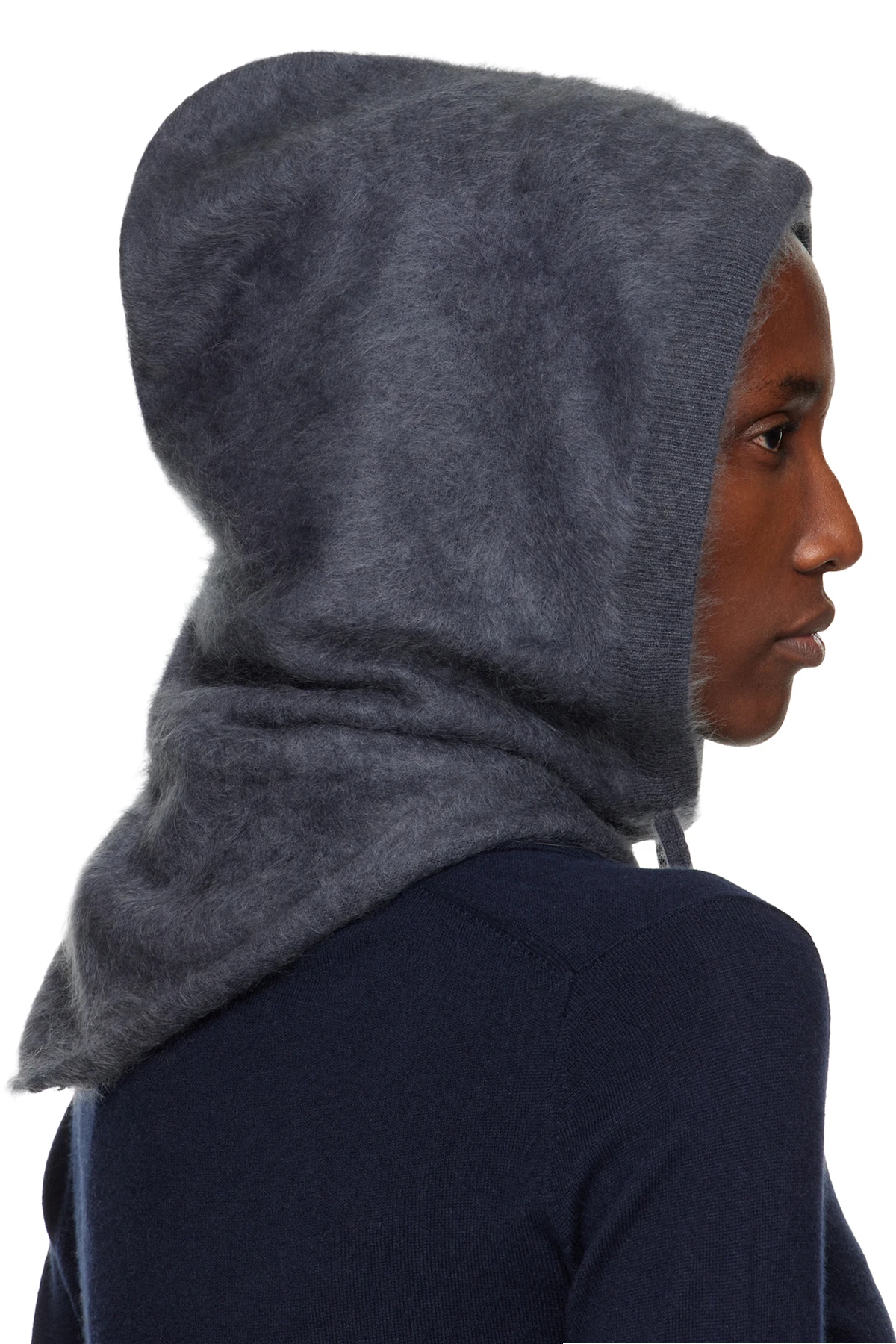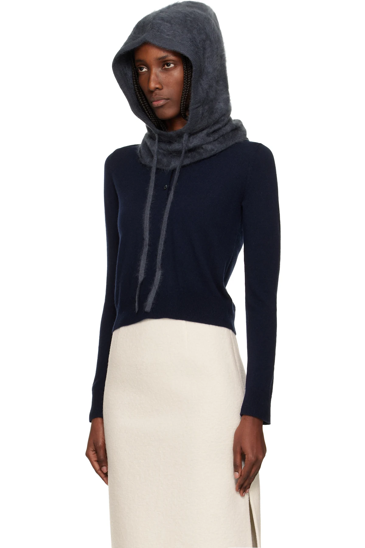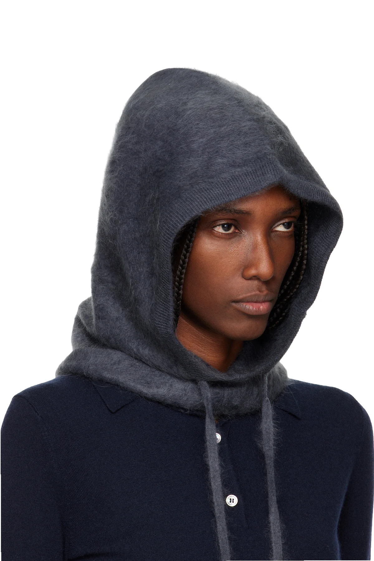 GOTS-certified brushed knit cashmere balaclava. Rib-knit trim and drawstring at face.