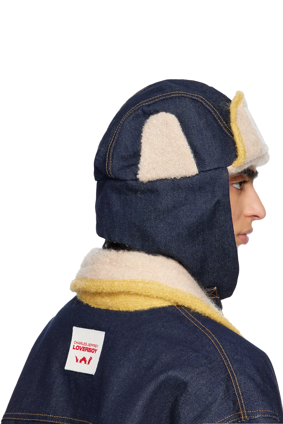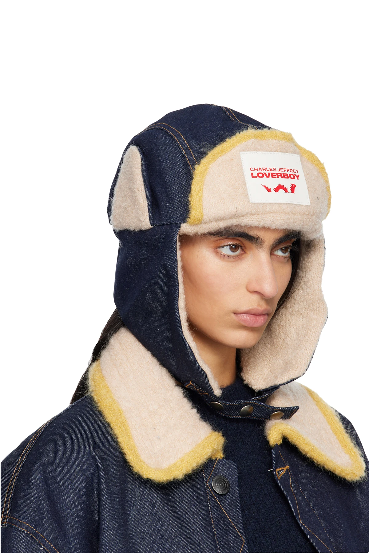 Navy & Beige Knit Patch Trapper Hat