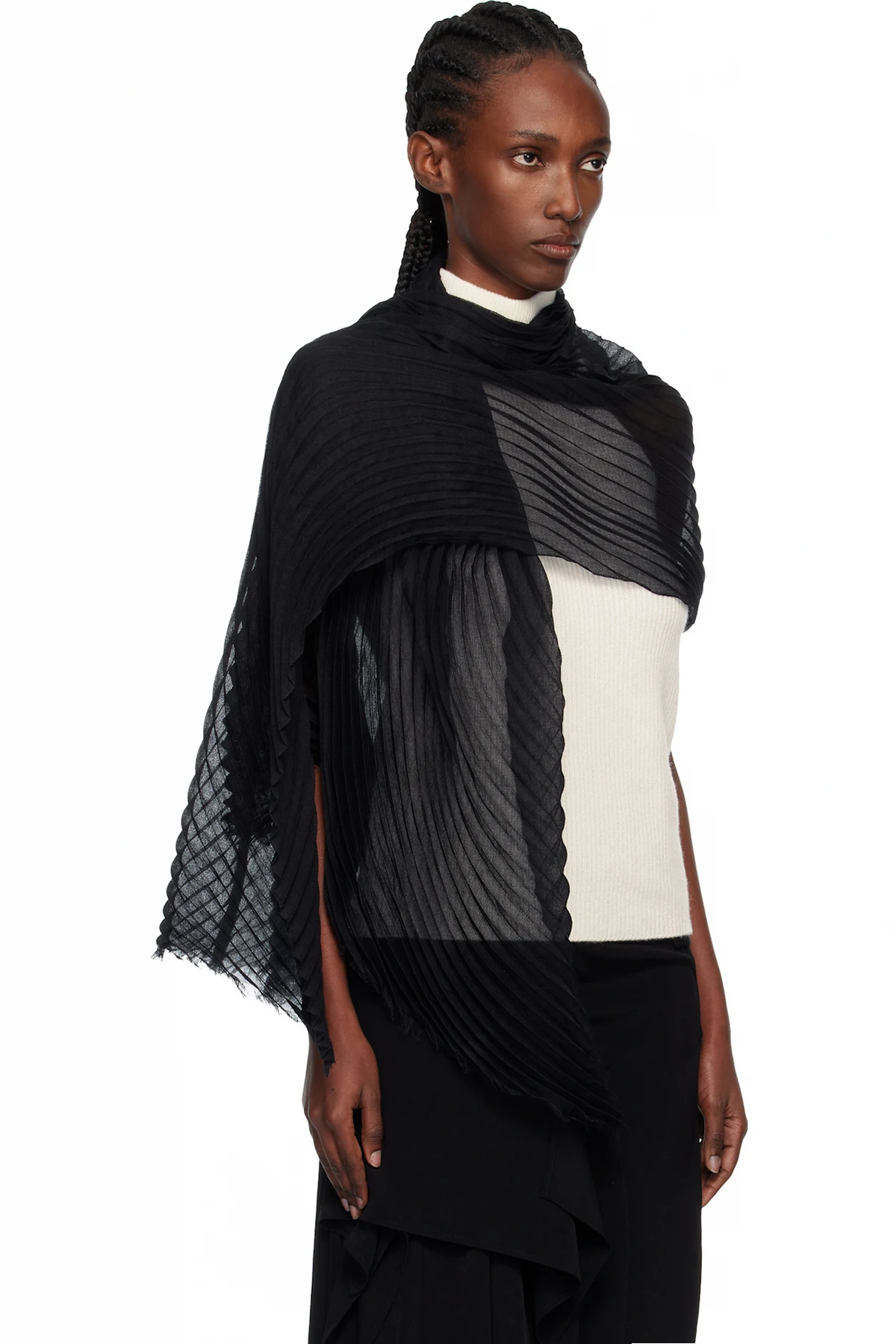 Rectangular garment-pleated silk- and wool-blend voile scarf.