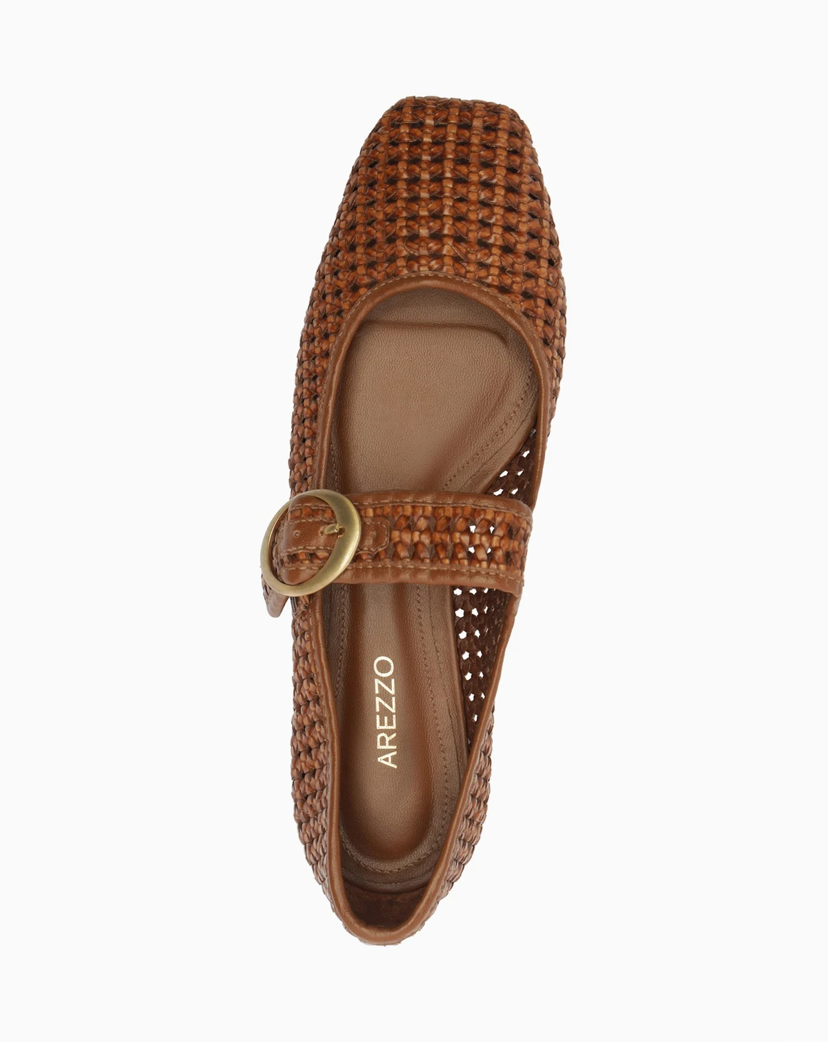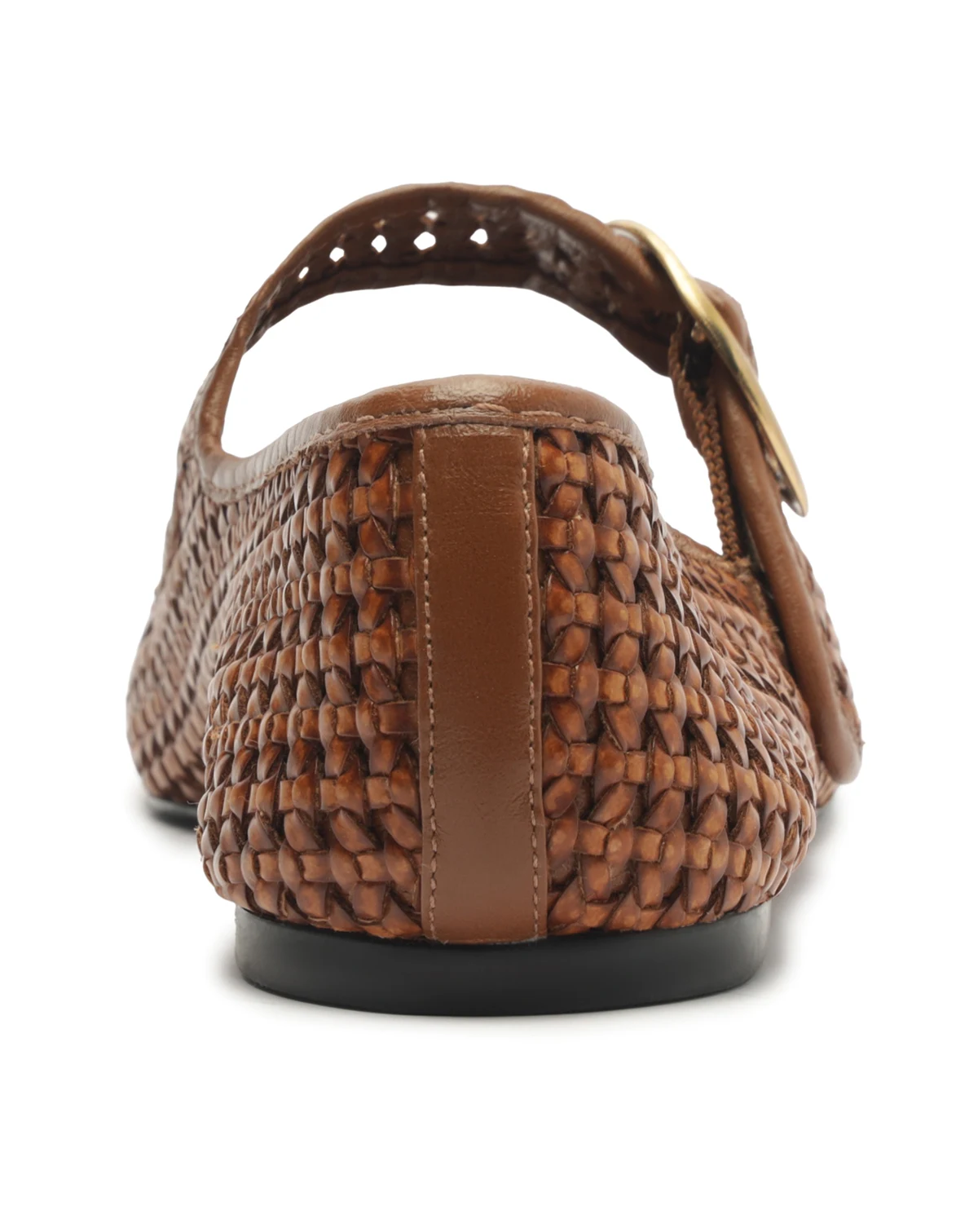 Keep it sophisticated in the Eve Ballet. Featuring a textured woven finish, square toe, and a wide strap with a statement gold buckle, these flat strikes the perfect balance between charm and modernity. Pair it with long dresses or tailored shorts.