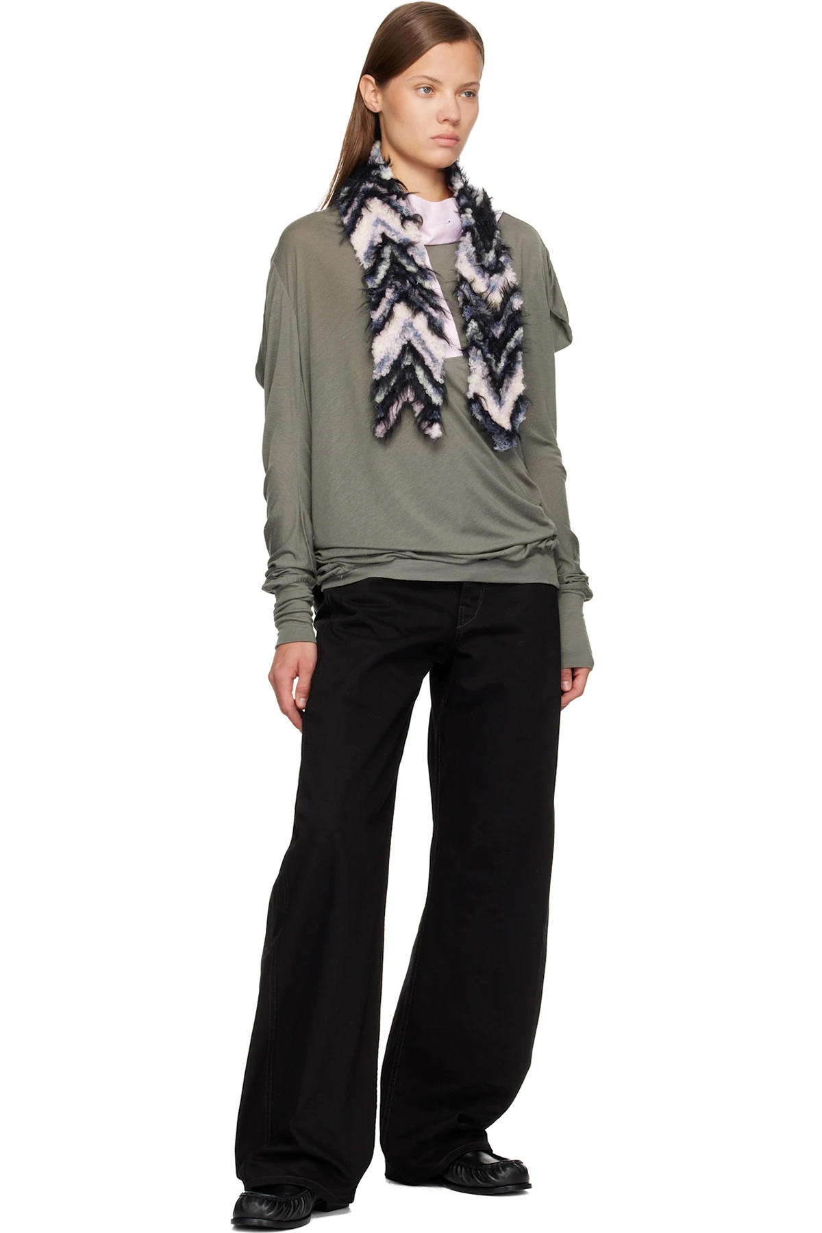 Rectangular knit mohair-blend scarf.