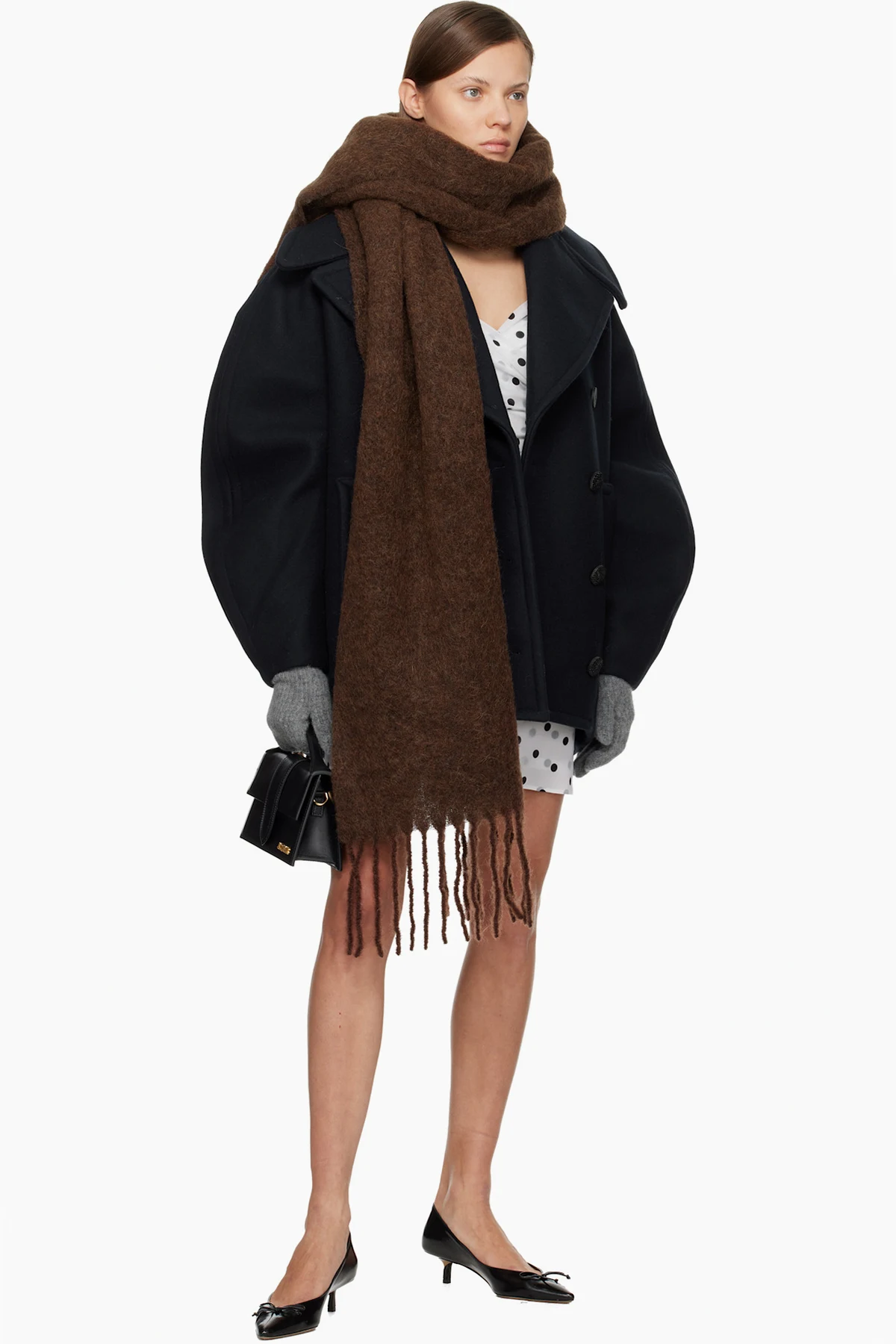 Rectangular brushed knit mohair- and alpaca-blend scarf.