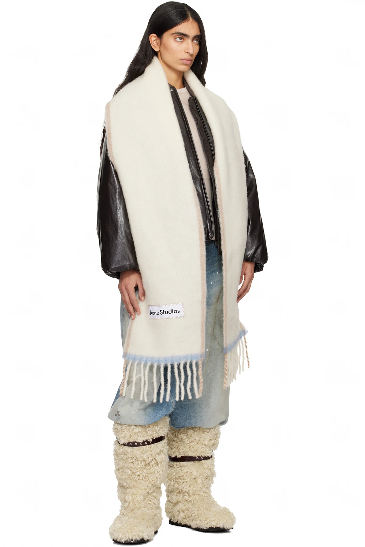 Off-White Wool Fringe Scarf