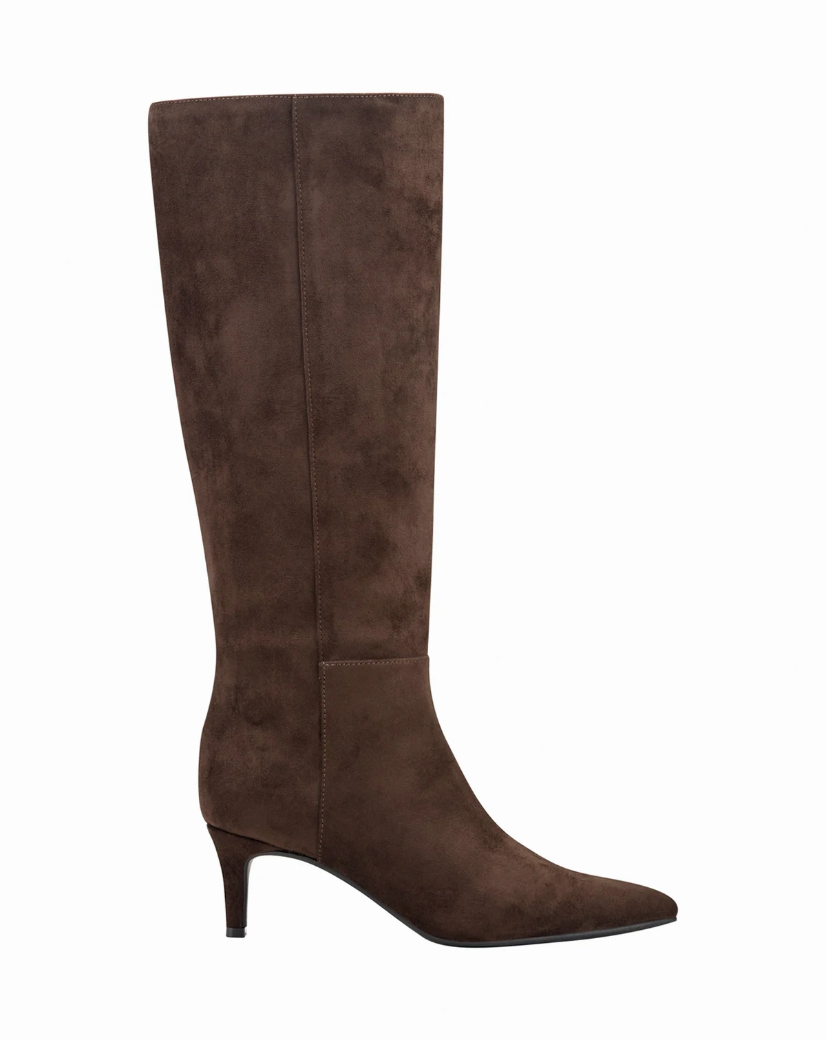 Show off your sleek style in the Marc Fisher Glint dress boots, featuring a mid stiletto heel, pointy toe and tall shaft. The Glint boots are sure to impress. Designed for the modern woman, Marc Fisher Footwear provides statement shoes for every occasion.