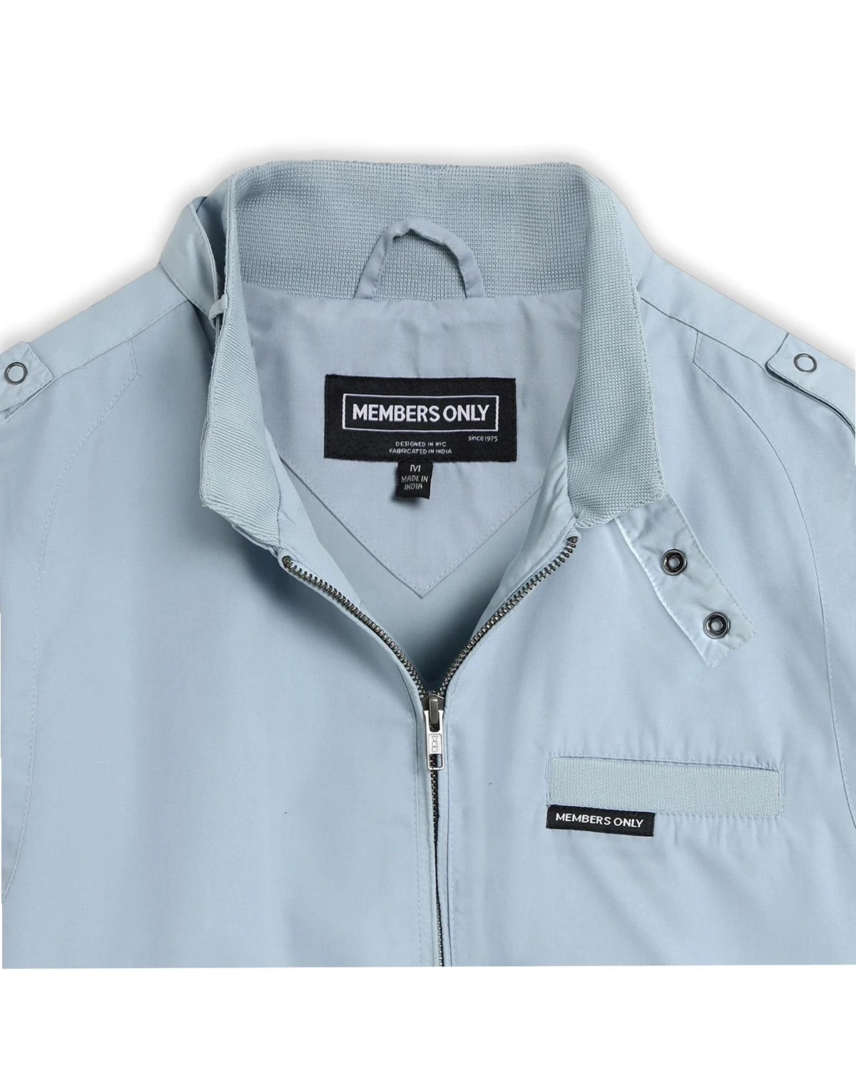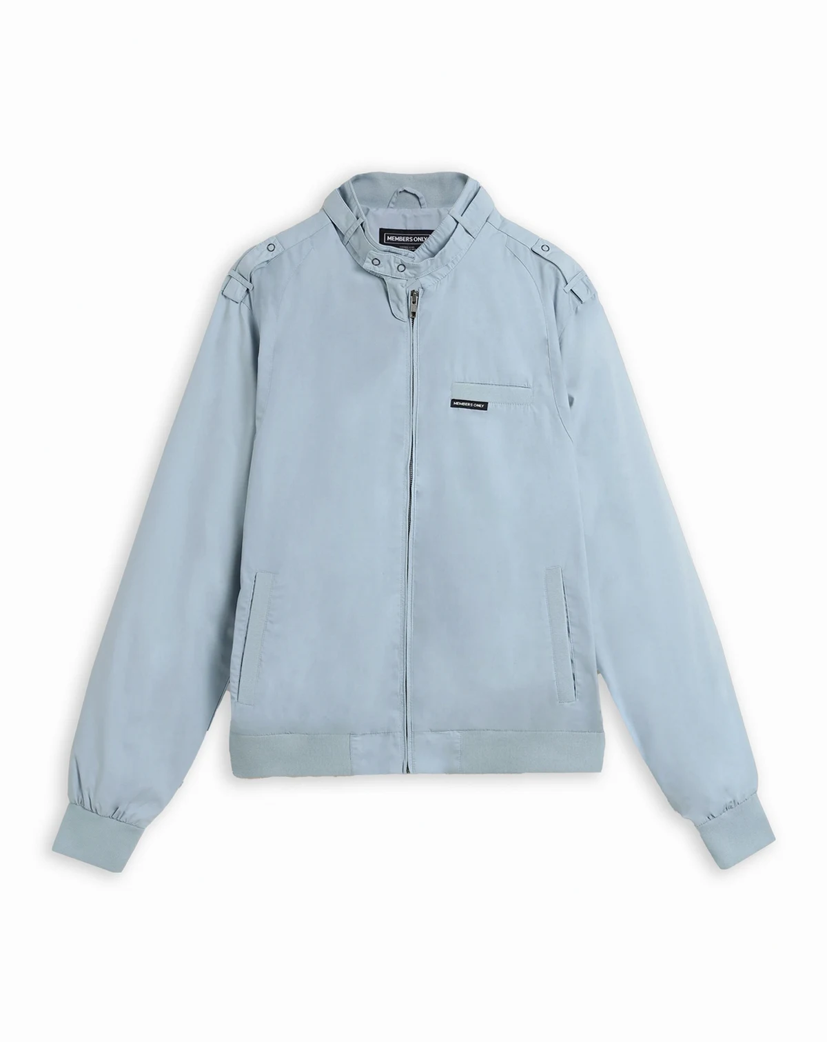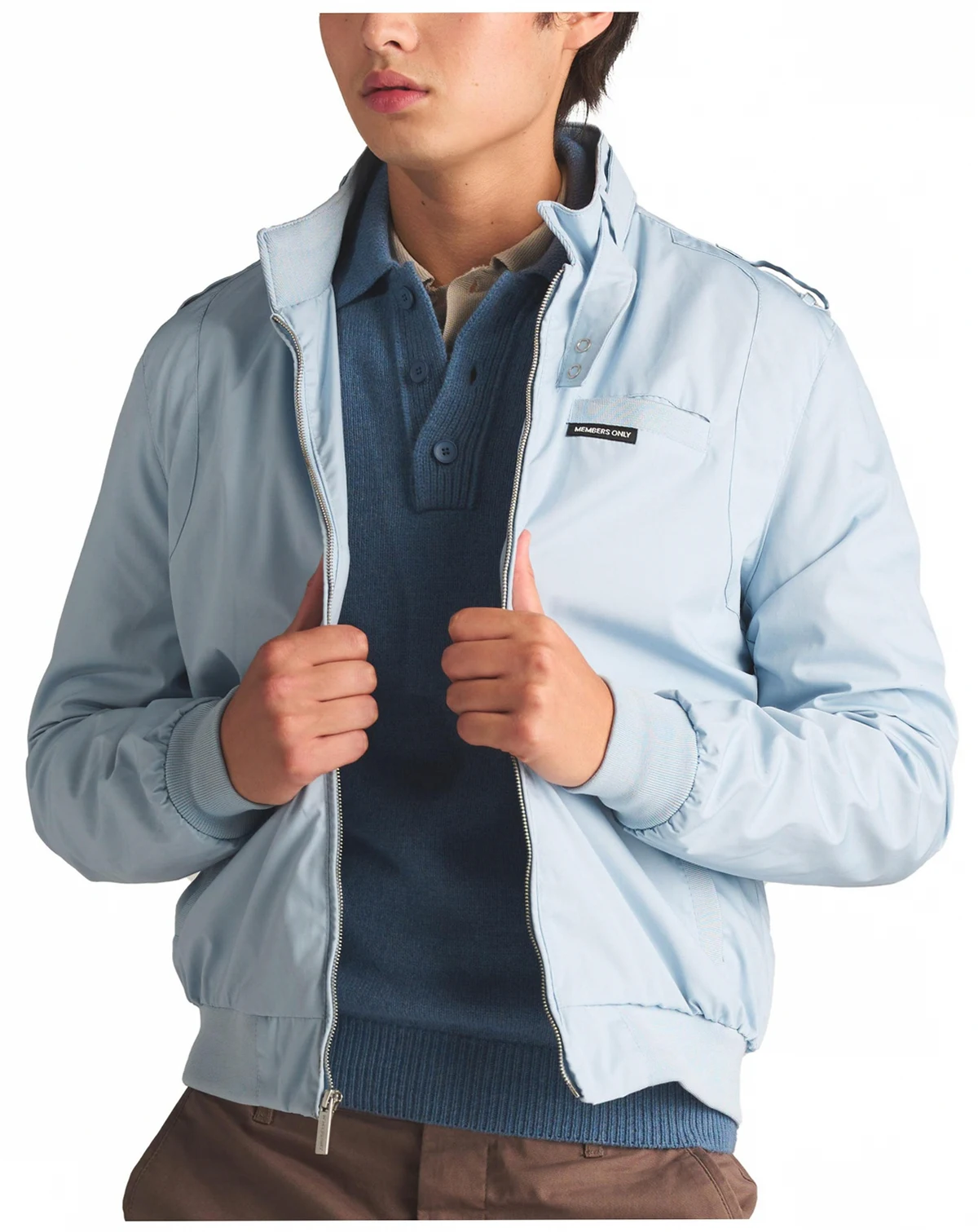 Stay stylish in any weather with the water-resistant Classic Iconic Racer Jacket from Members Only. This men s jacket is a designer jacket crafted for everyday adventures, offering reliable protection in unpredictable conditions. Featuring a double snap iconic throat latch, signature shoulder epaulettes, and our trademark front logo pocket, it delivers timeless appeal. With a zip closure, two waist pockets, and a discreet inside pocket, this jacket is made from a premium 65% polyester & 35% cotton blend—ideal for year-round wear and effortless layering.