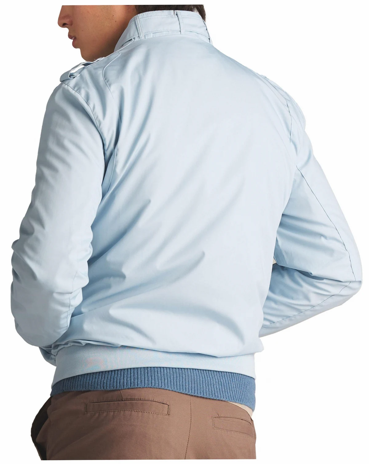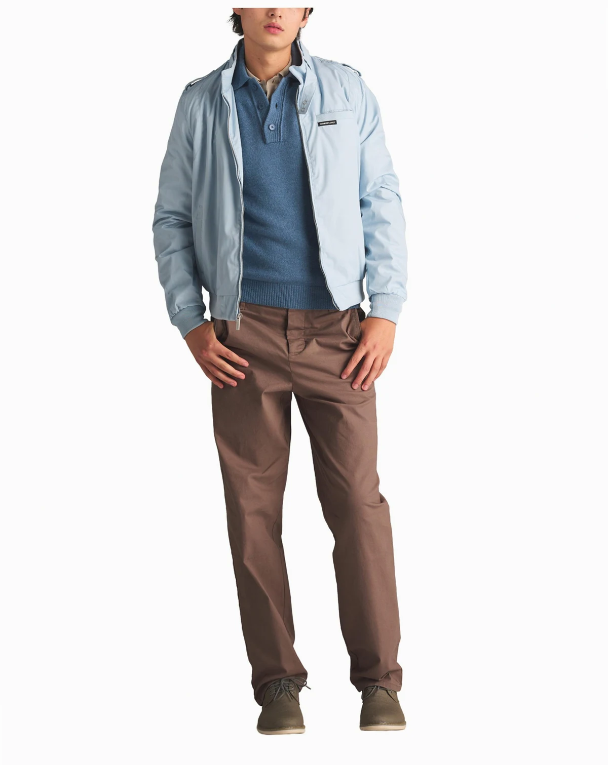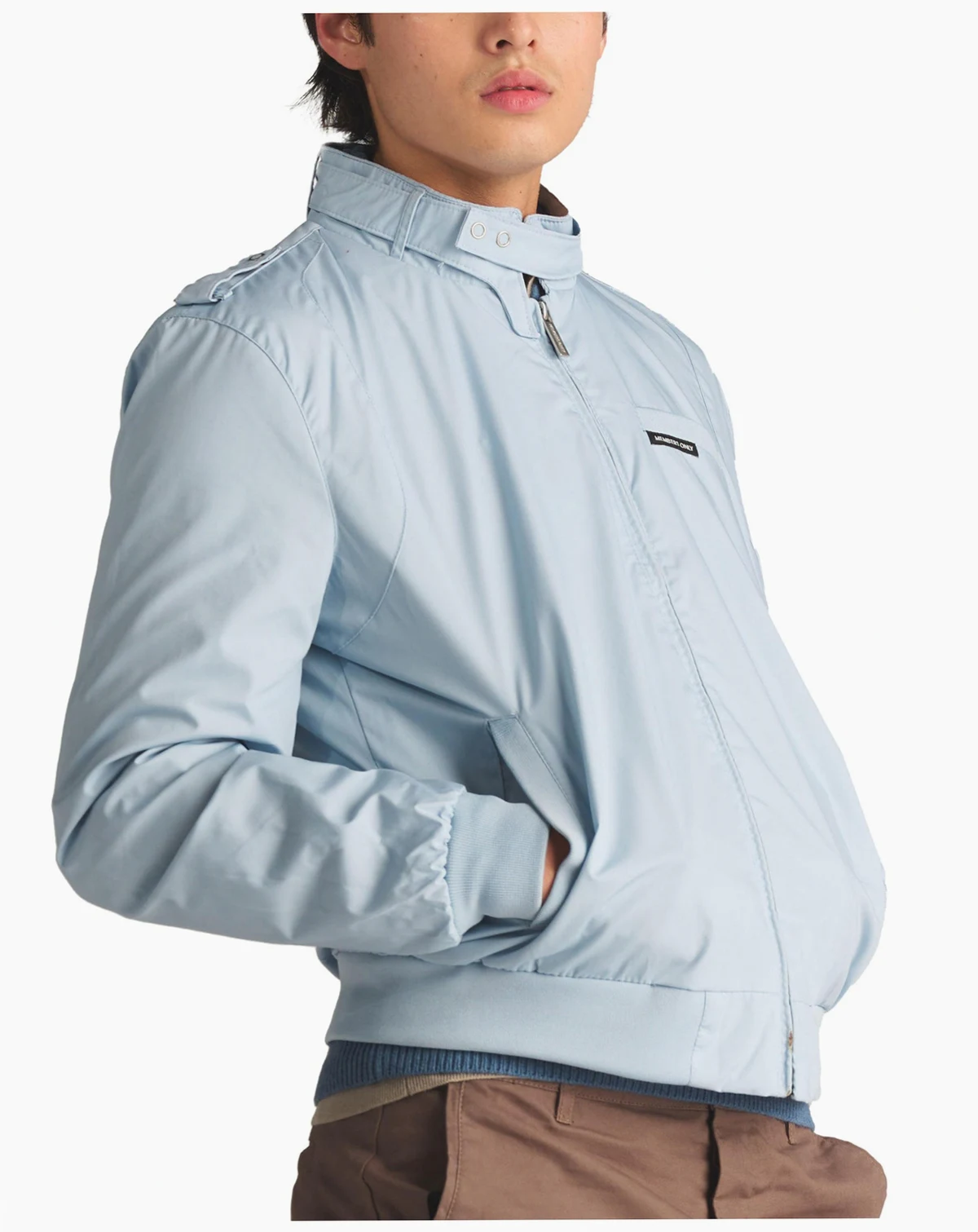 Stay stylish in any weather with the water-resistant Classic Iconic Racer Jacket from Members Only. This men s jacket is a designer jacket crafted for everyday adventures, offering reliable protection in unpredictable conditions. Featuring a double snap iconic throat latch, signature shoulder epaulettes, and our trademark front logo pocket, it delivers timeless appeal. With a zip closure, two waist pockets, and a discreet inside pocket, this jacket is made from a premium 65% polyester & 35% cotton blend—ideal for year-round wear and effortless layering.