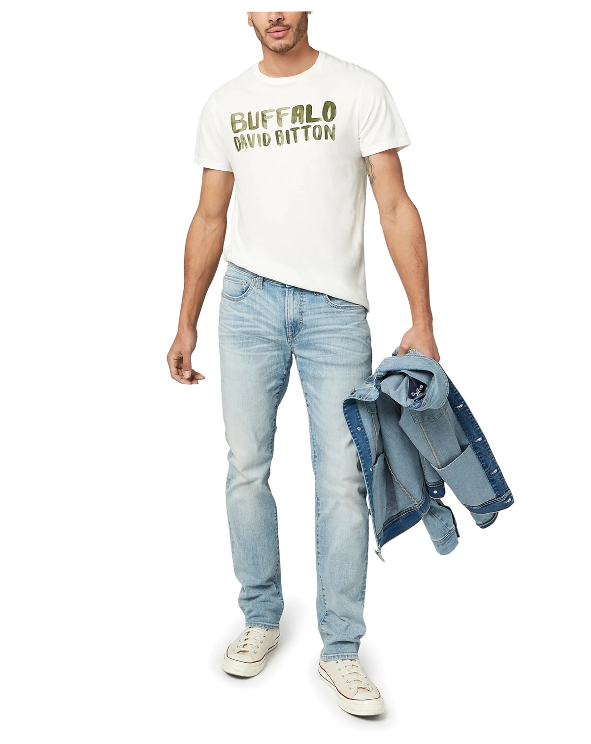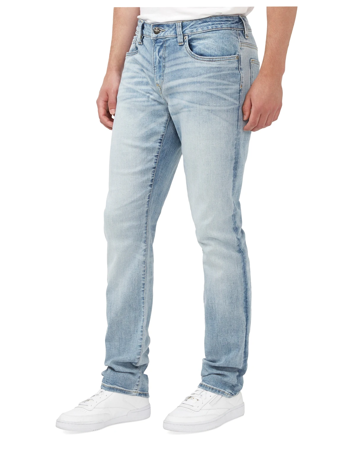Machine washable; Slim ash denim elevated with a trendy acid wash