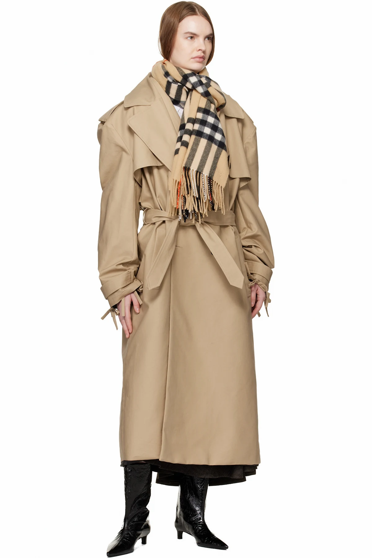 Beige Wide Cross Stitch EKD Check Cashmere Scarf